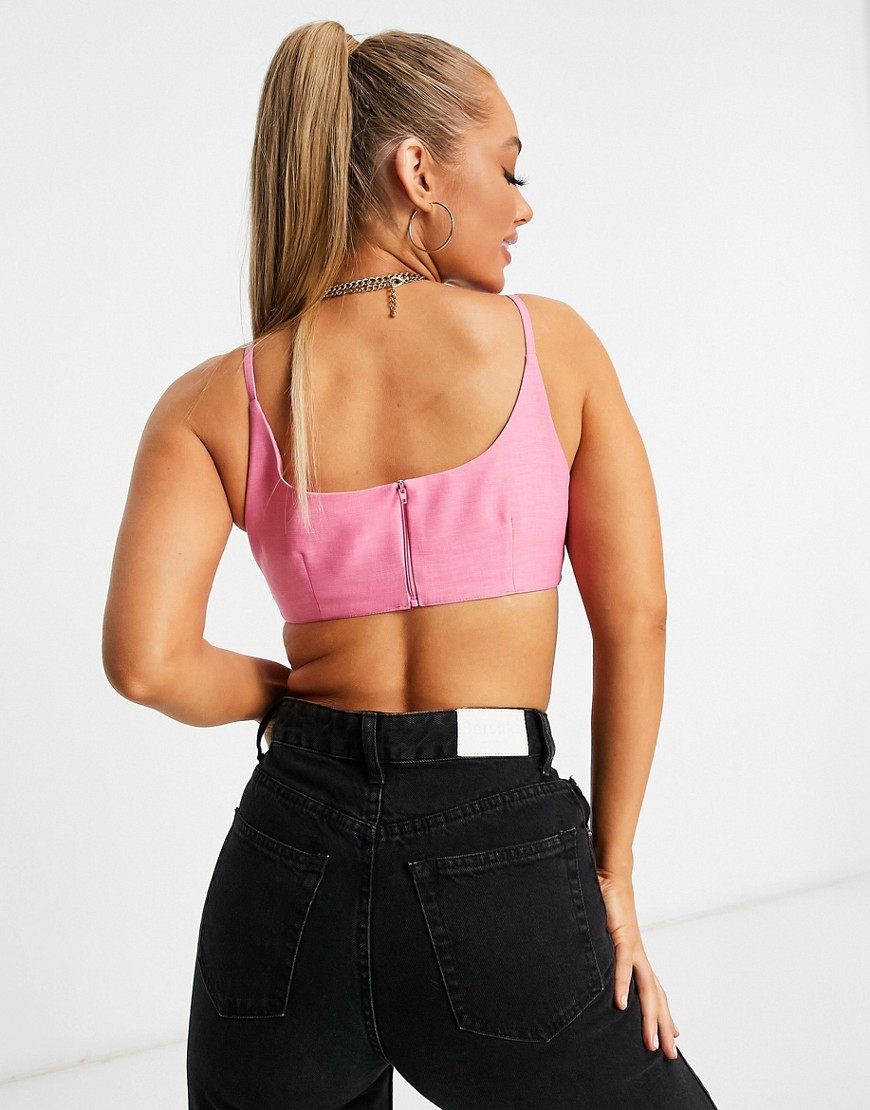 Różowy krótki top damski na ramiączkach 34