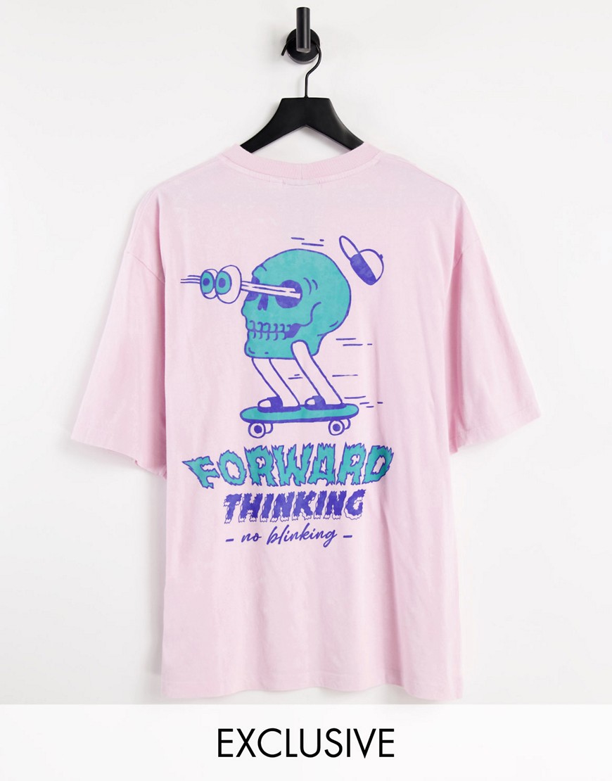 Różowy sprany T-shirt oversize z kreskówkowym nadrukiem czaszki unisex S