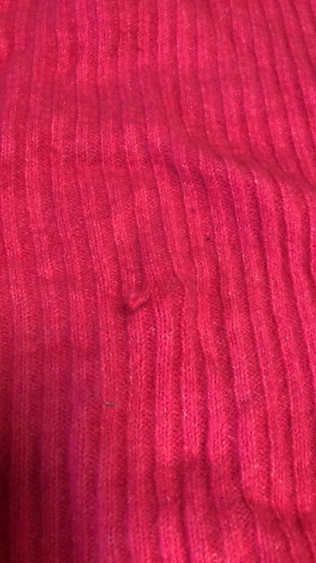 • Defekt: zmechacony materiał oraz mała dziurka tył środek