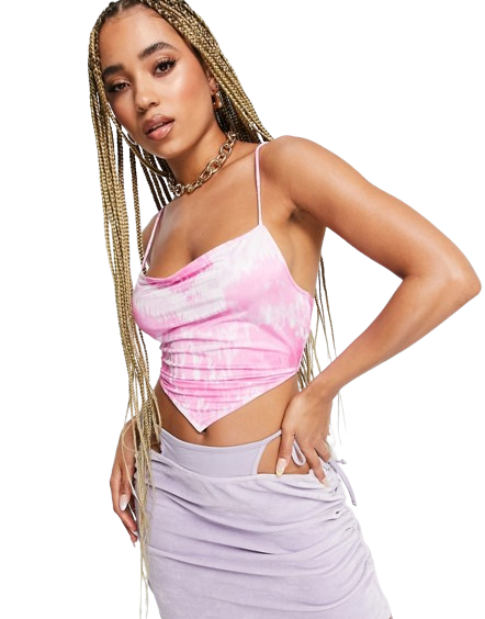 Różowy top na ramiączkach o fasonie chusty z efektem tie dye 36