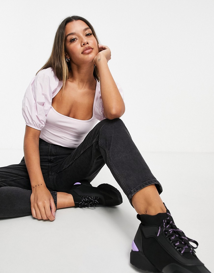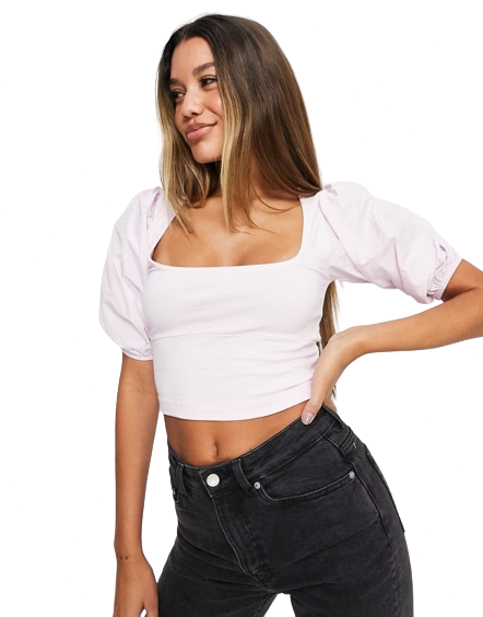 Różowy top z kwadratowym dekoltem i bufkami 34