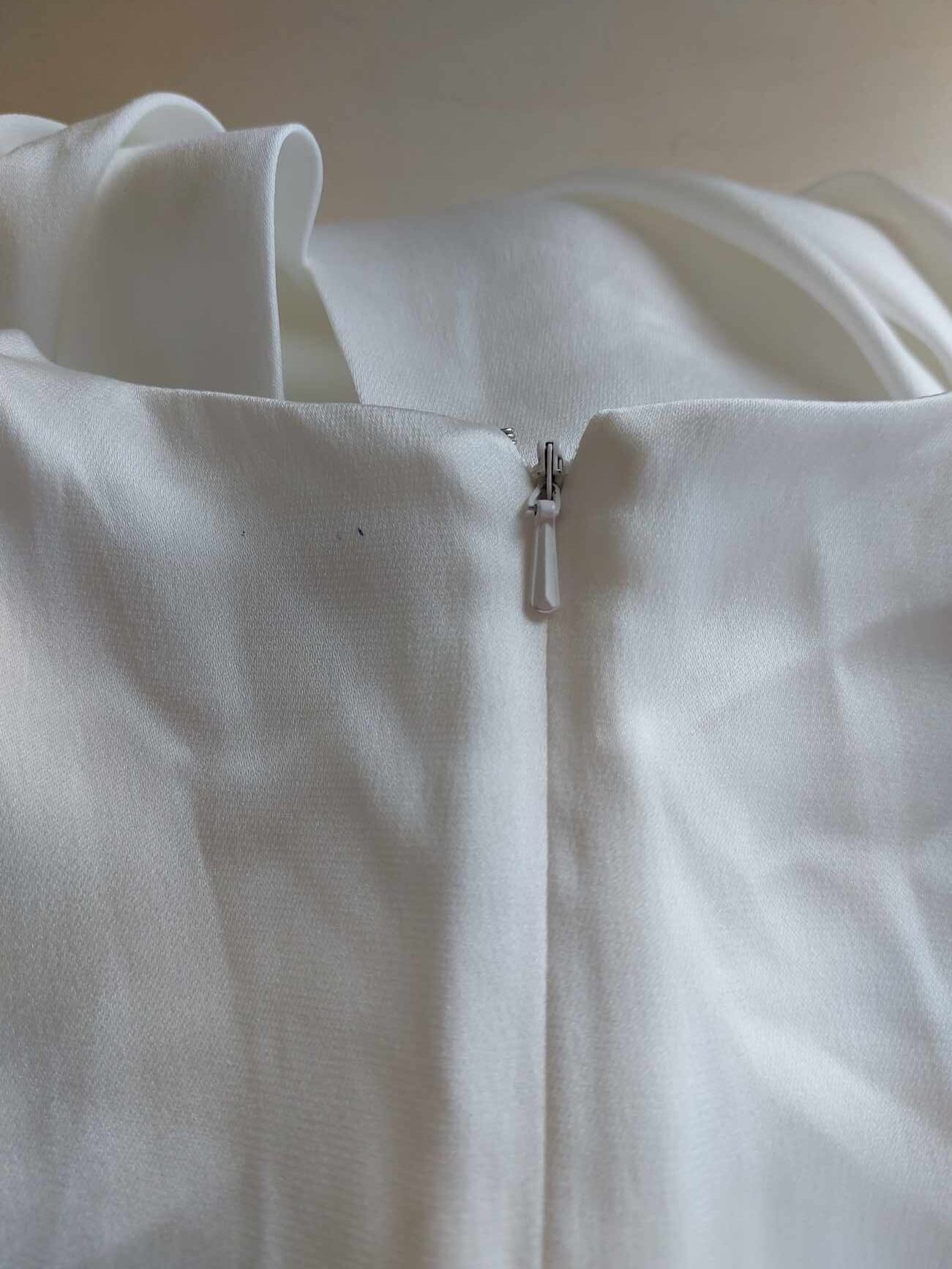 - Defekt wymaga odświeżenia, plamka przy talii oraz z tyłu przy dekolcie,niewielkie zaciągnięcie na spódnicy, zdjęcia w galerii produktu
