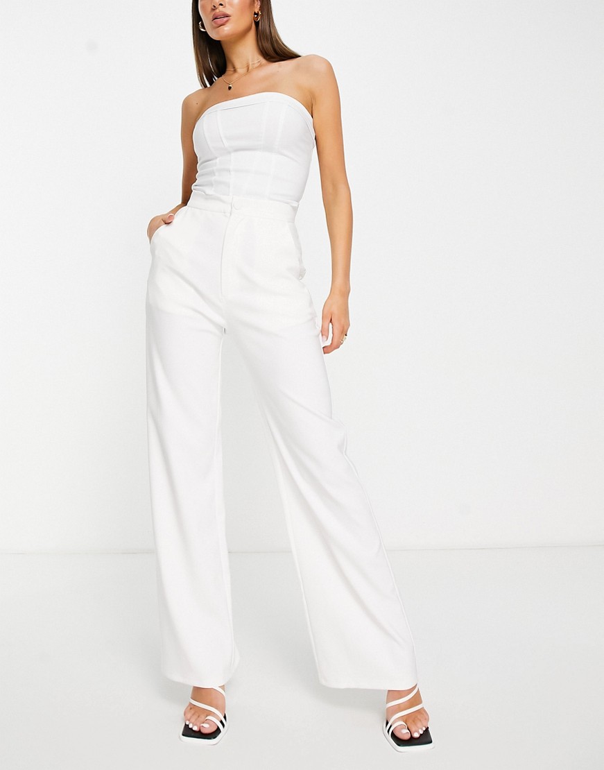 Saint Genies białe spodnie z rozszerzanymi nogawkami defekt 44