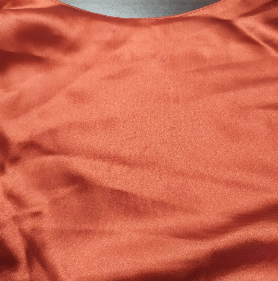 - Defekt : zabrudzenia po wewnętrznej stronie dekoltu, zdjęcie w galerii produktu
