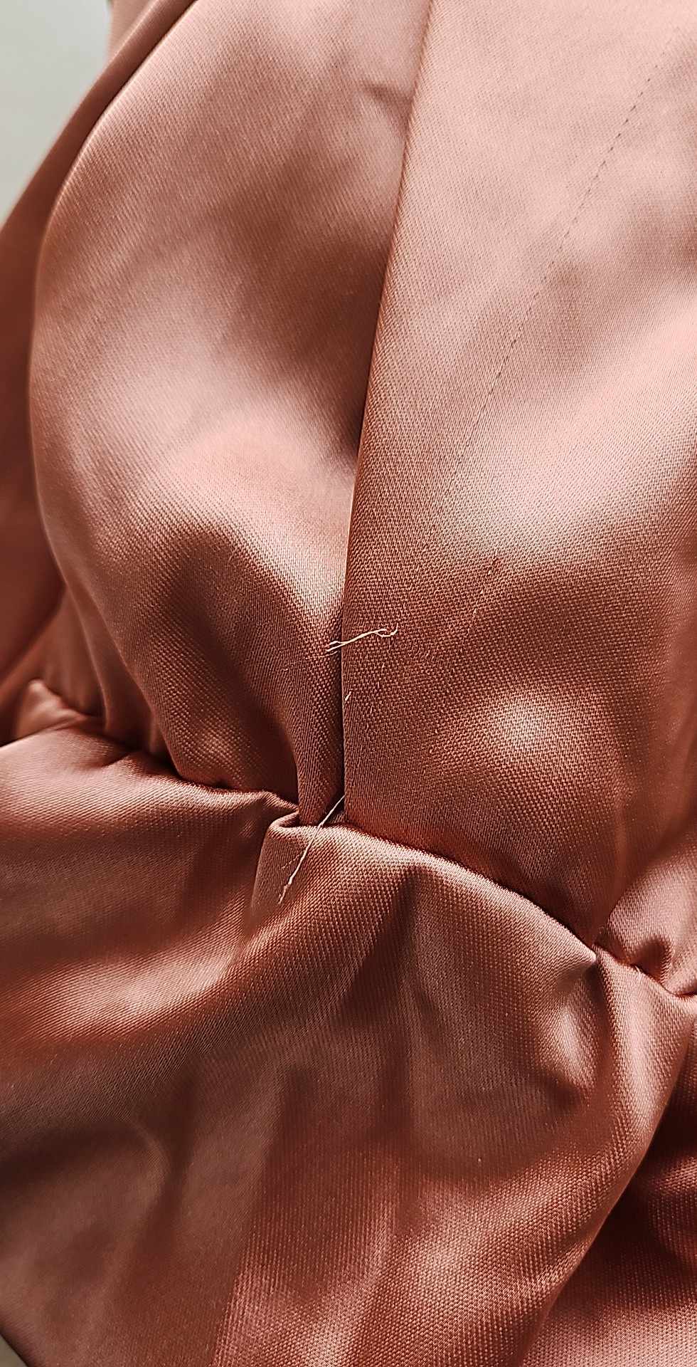 - Defektzaciągnięty materiał przy ramionach z przodu oraz w talii, zdjęcia w galerii produktu