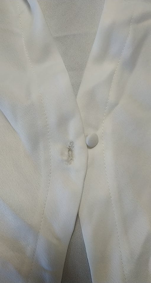 - defekt postrzępione obszycie dziurki od guzika