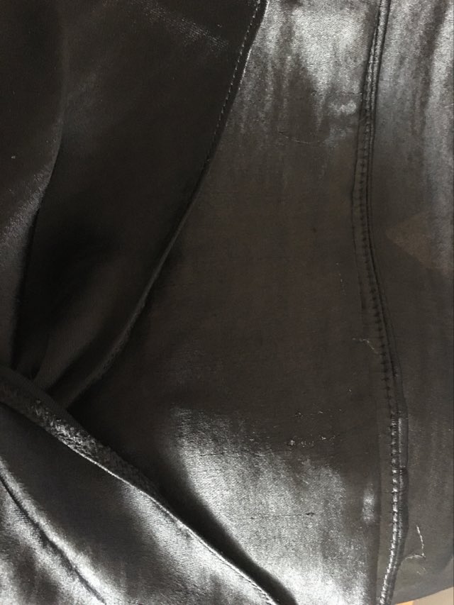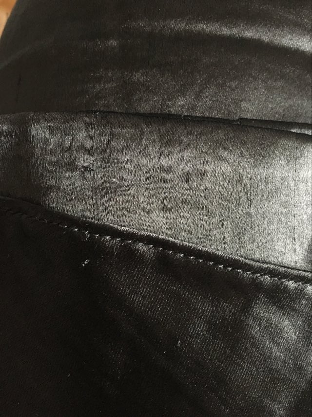 - Defekt: liczne zaciągniecia na pasku z przodu i tyłu spódnicy (zdjęcia).