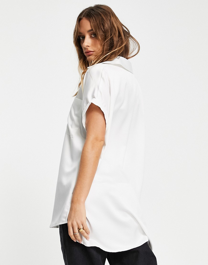 Satynowa koszula z krótkimi rękawami biała defekt 38