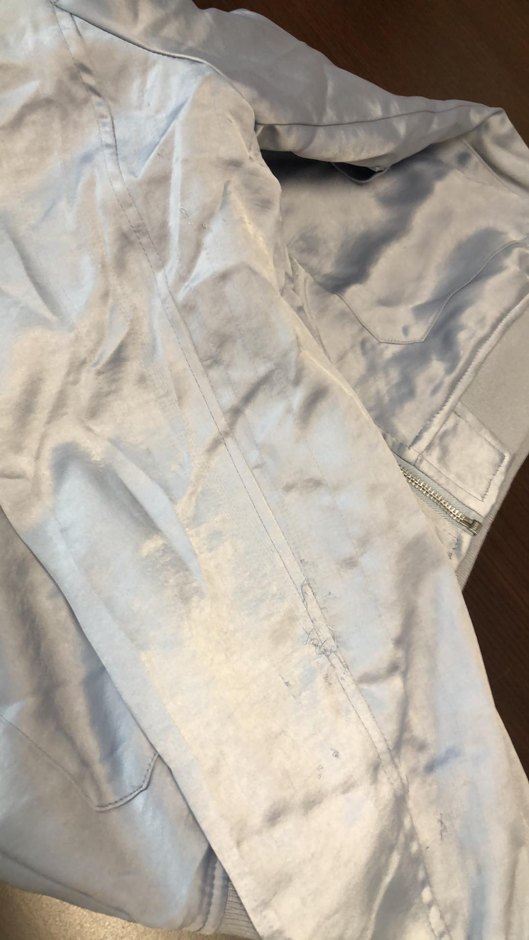 - Defekt: zaciągnięcie materiału rękaw tył oraz dekolt wewnatrz