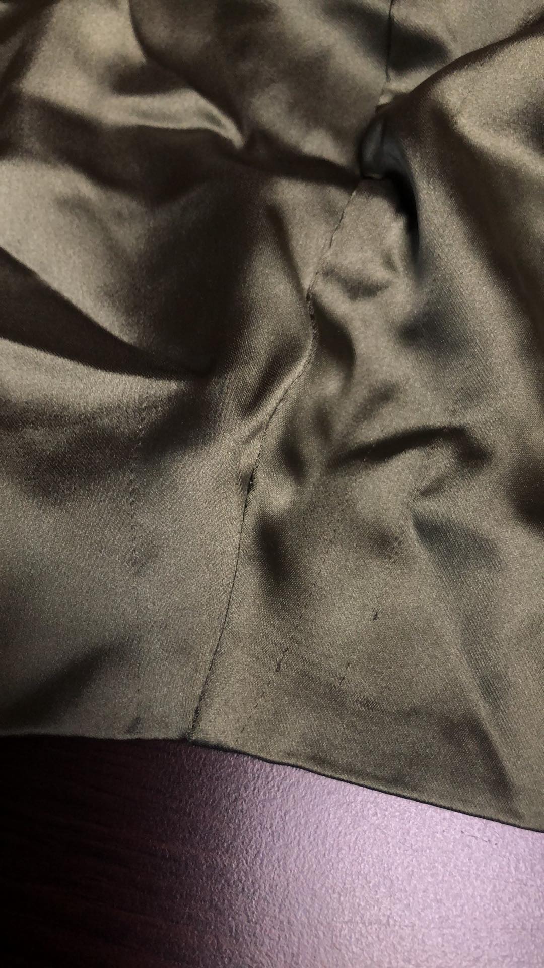 Satynowa spódnica kopertowa mini khaki defekt 44