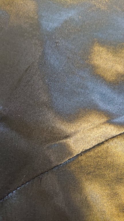 - DEFEKT: Z prawej strony na górze zaciągnięta nitka