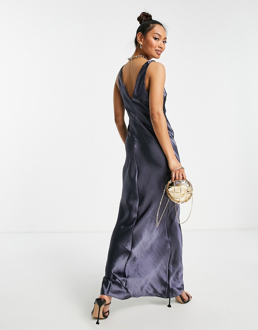 Satynowa sukienka maxi na ramiączkach ze skosu z dekoltem w szpic 36