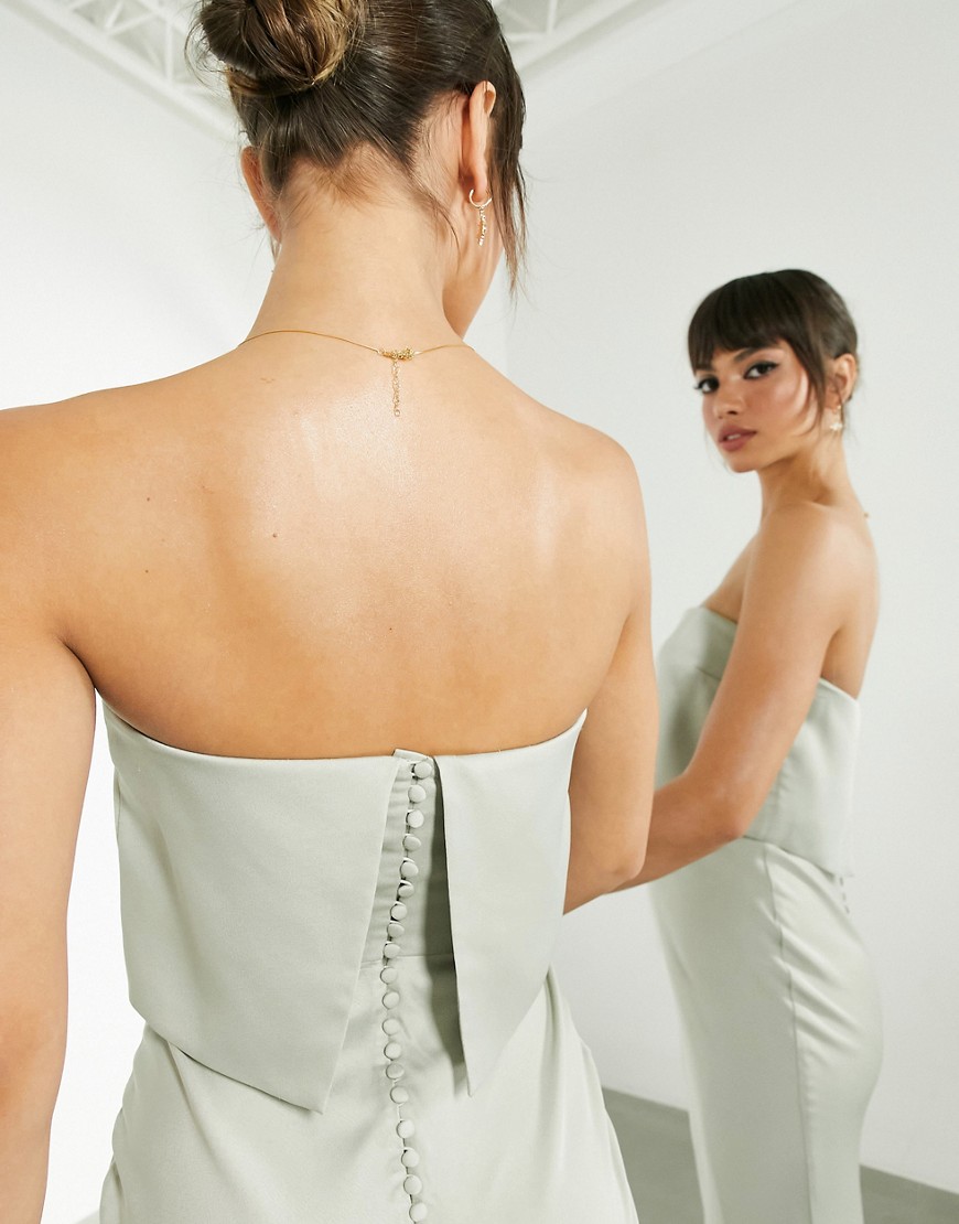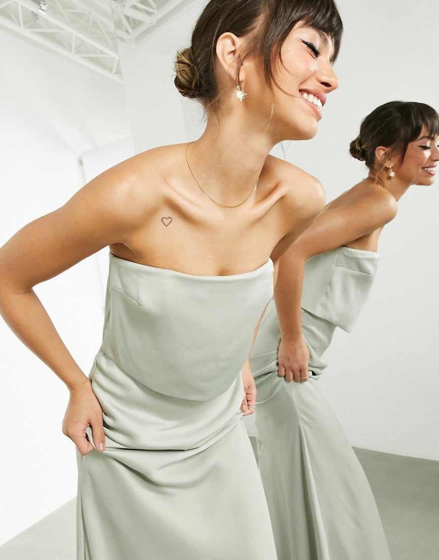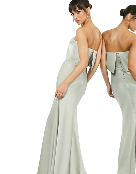Satynowa sukienka maxi z dekoltem bandeau 40