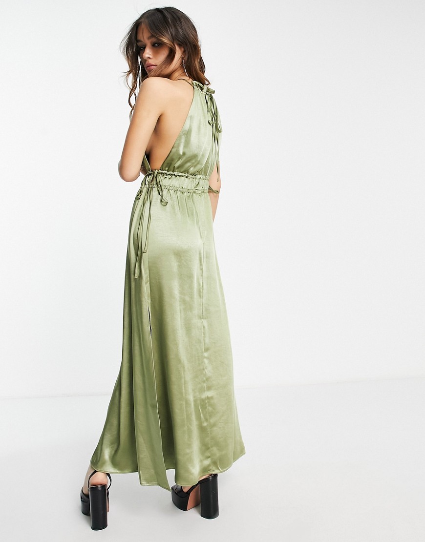Satynowa sukienka midi w kolorze khaki L