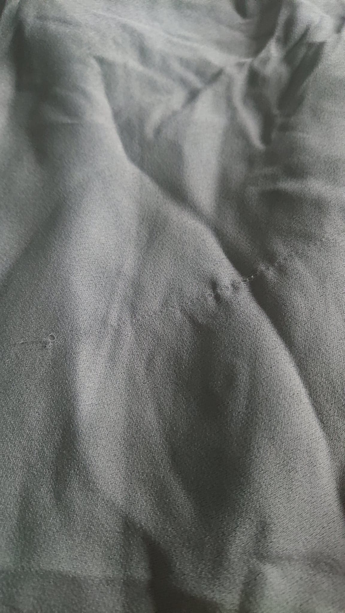 - DEFEKT: Z przodu z prawej strony pod pasem jest zaciągnięta nitka