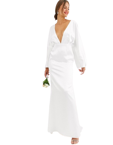 Satynowa suknia ślubna z rękawami kimono 36