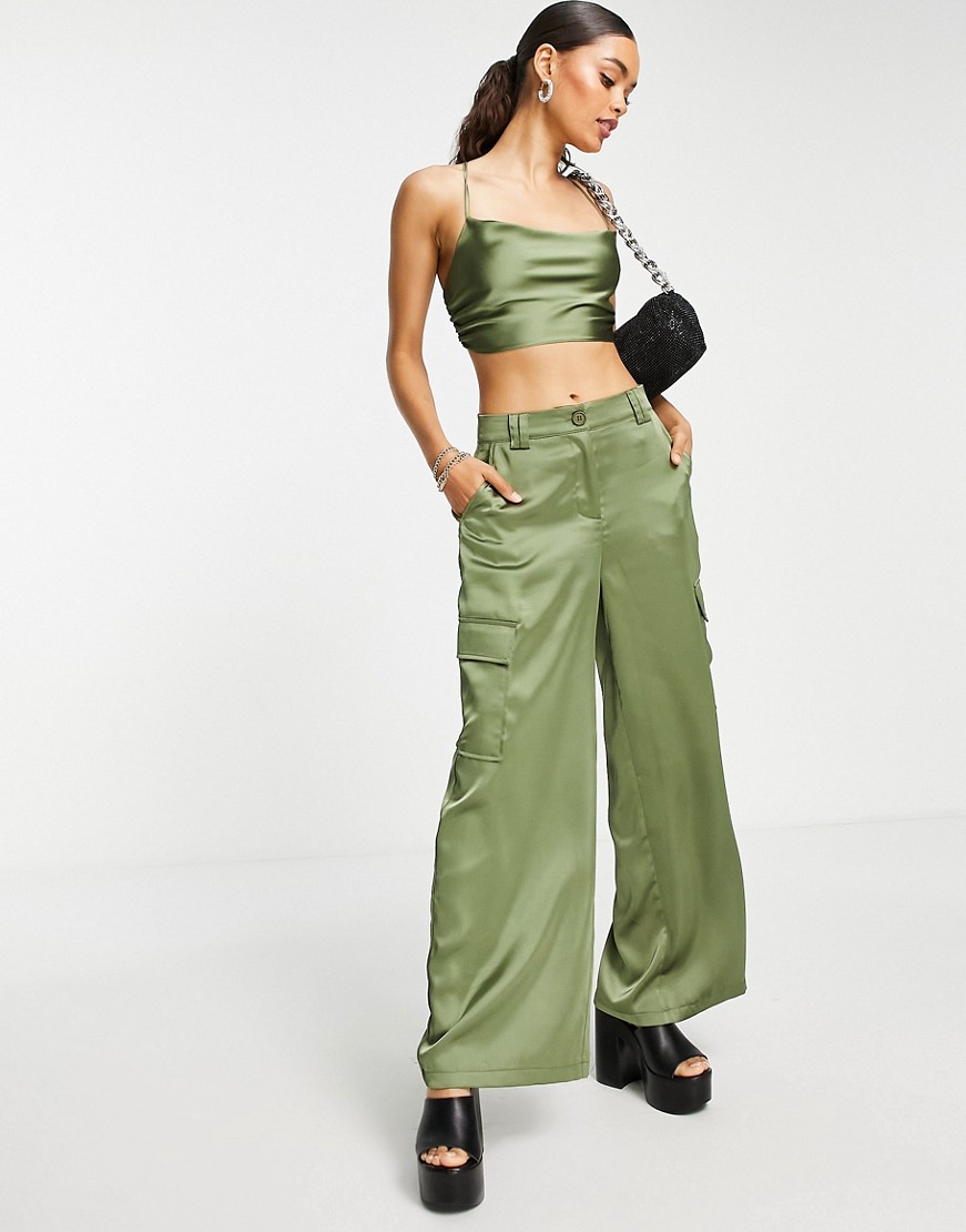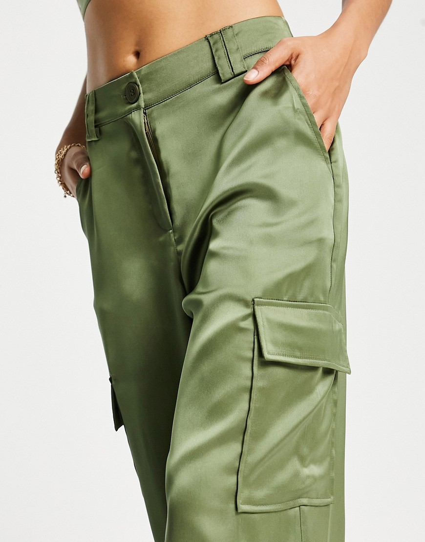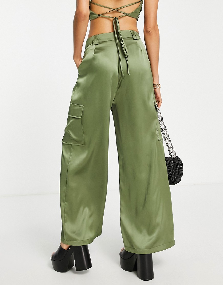 Satynowe bojówki z szerokimi nogawkami khaki 36
