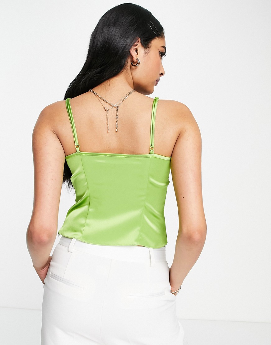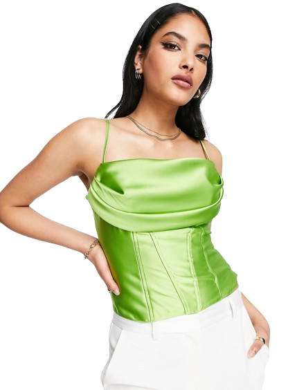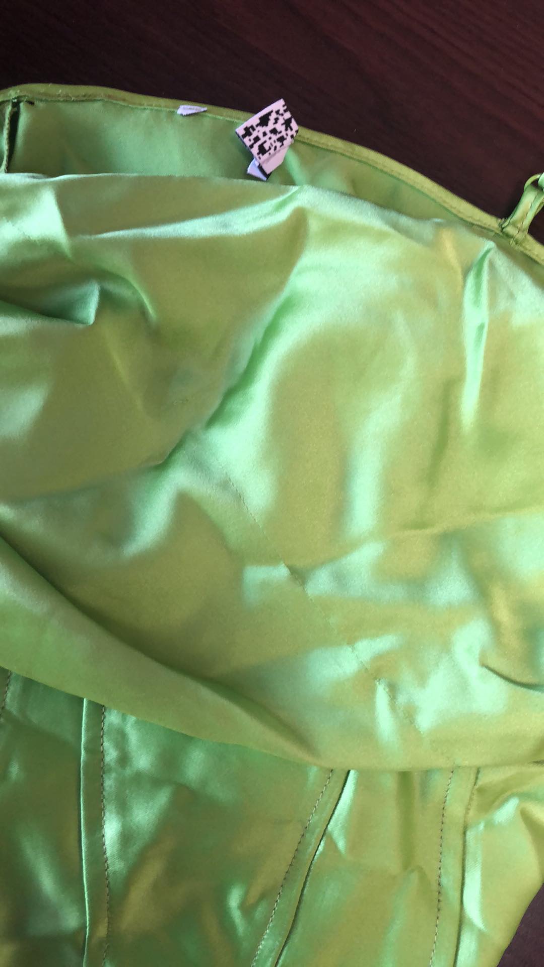 Satynowy gorsetowy top na ramiączkach z przeszyciami w kolorze zieleni defekt 40