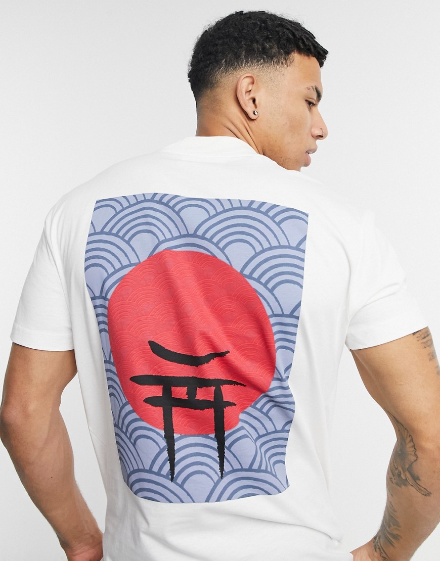 Selected Homme męski biały T-shirt oversize z grafiką na plecach z organicznej bawełny S
