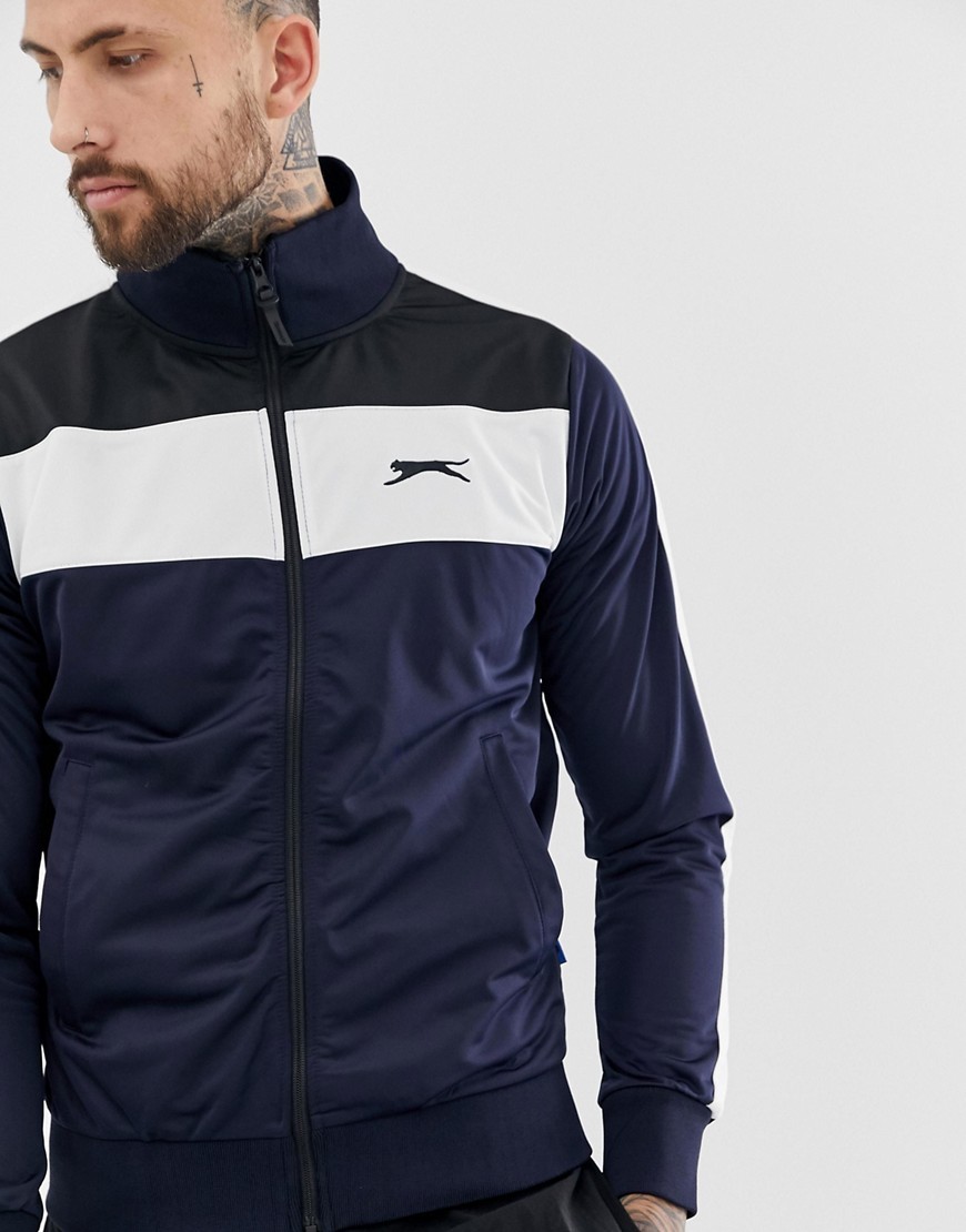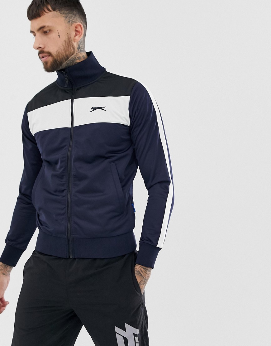Slazenger Granatowa Kurtka dresowa z białym lampasem L