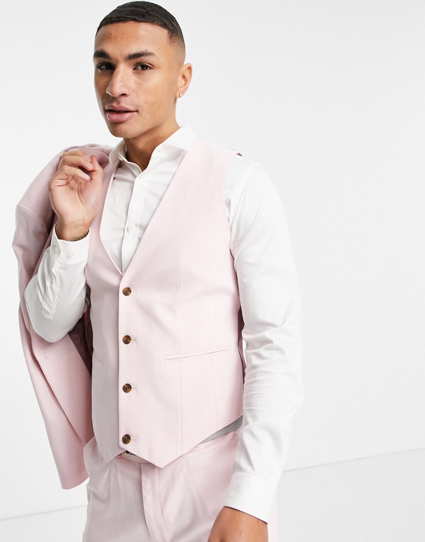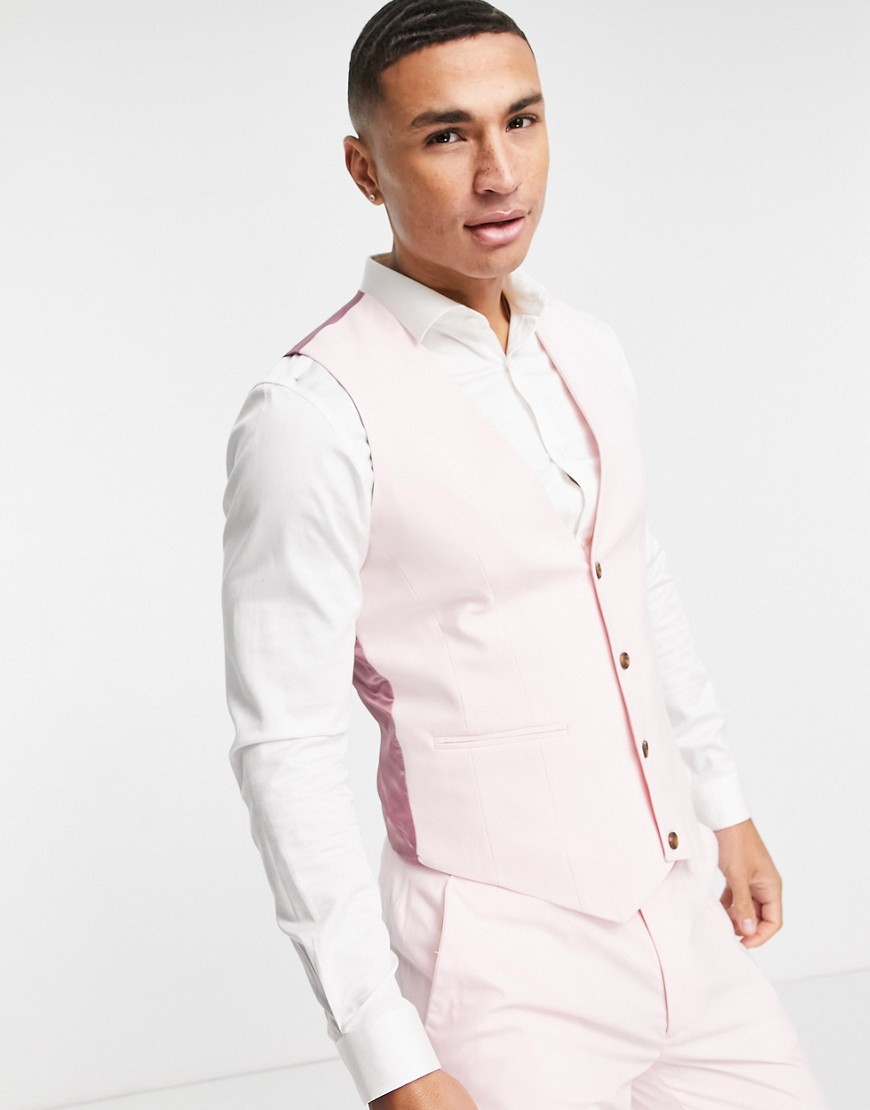 Ślubna kamizelka garniturowa o dopasowanym kroju w kolorze jasnoróżowym defekt 50