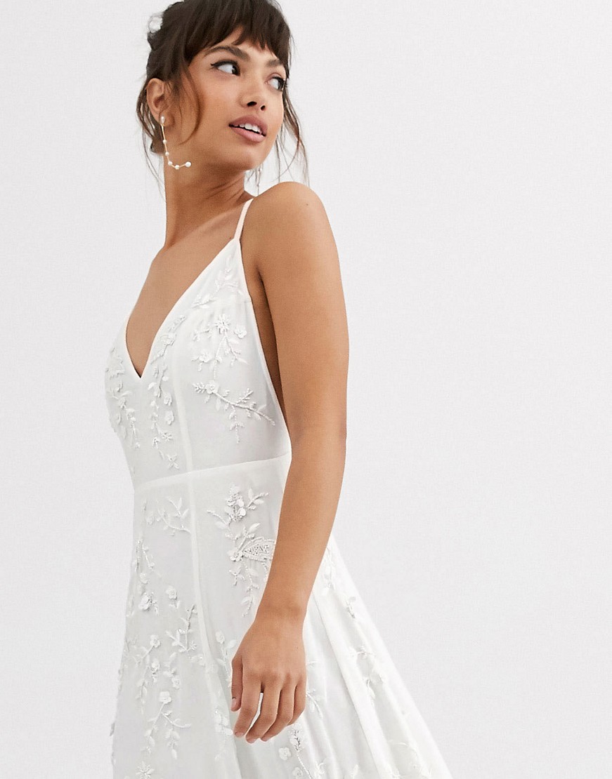 Ślubna sukienka na ramiączkach ozdobiona cekinami i koralikami defekt 36