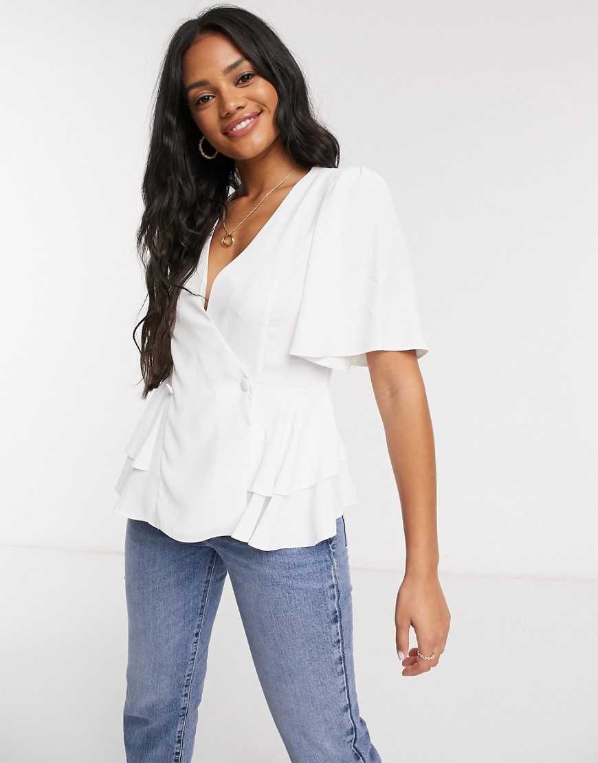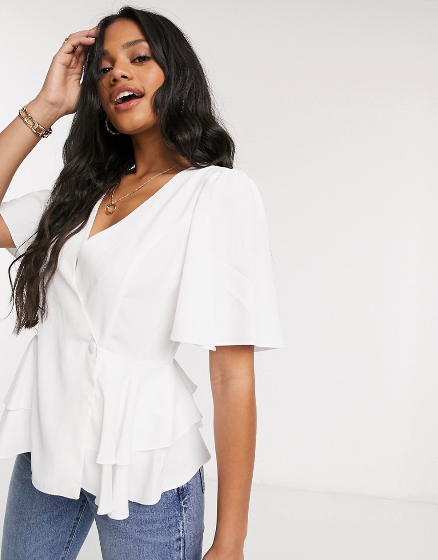 Smokingowa bluzka ze zwiewnymi rękawami i guzikami ivory 46