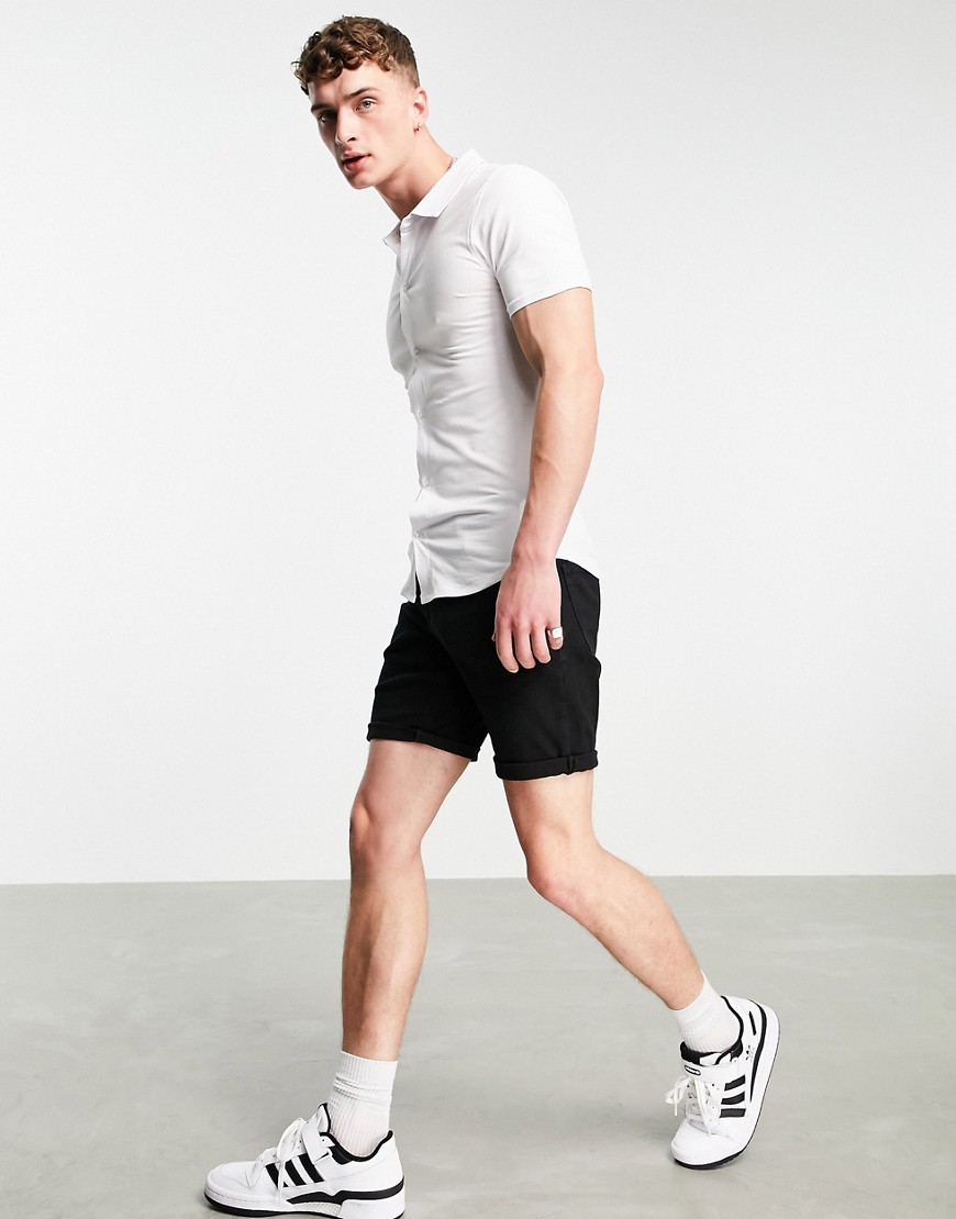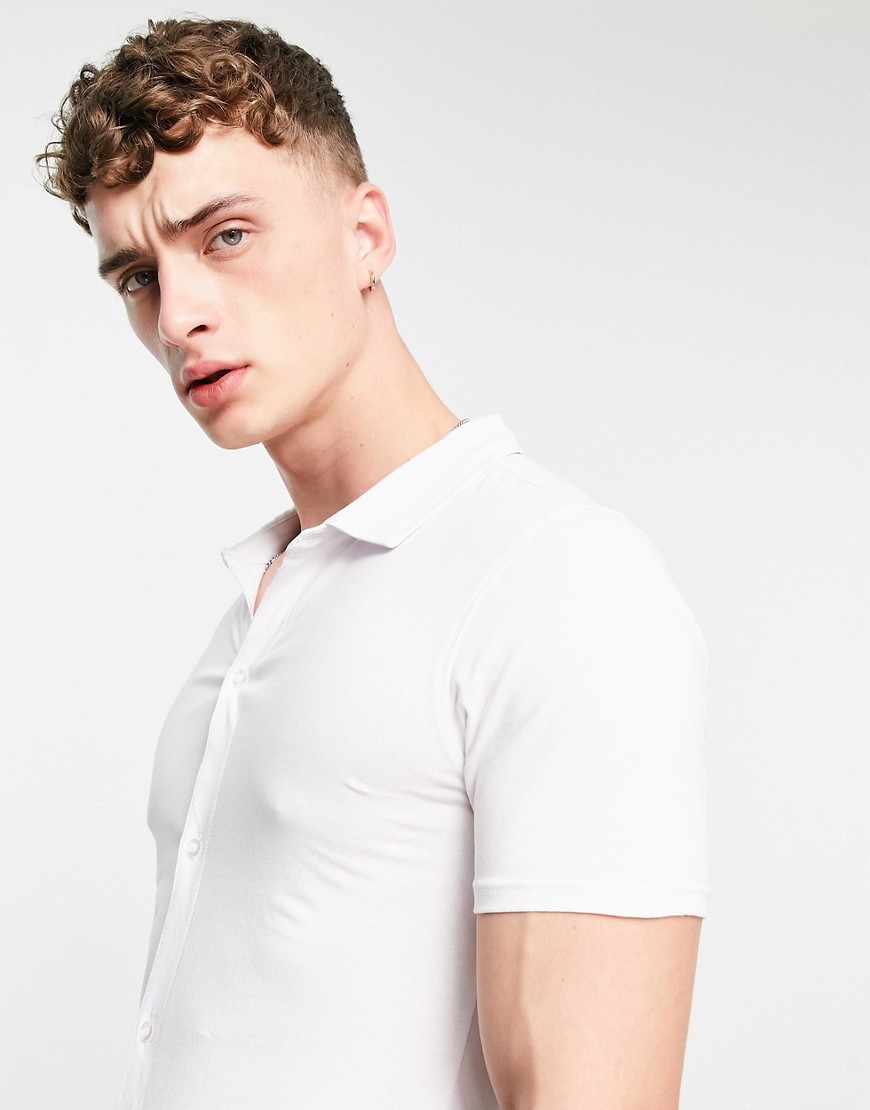 Soul Star biała koszula dżersejowa o kroju podkreślającym sylwetkę z krótkimi rękawami M
