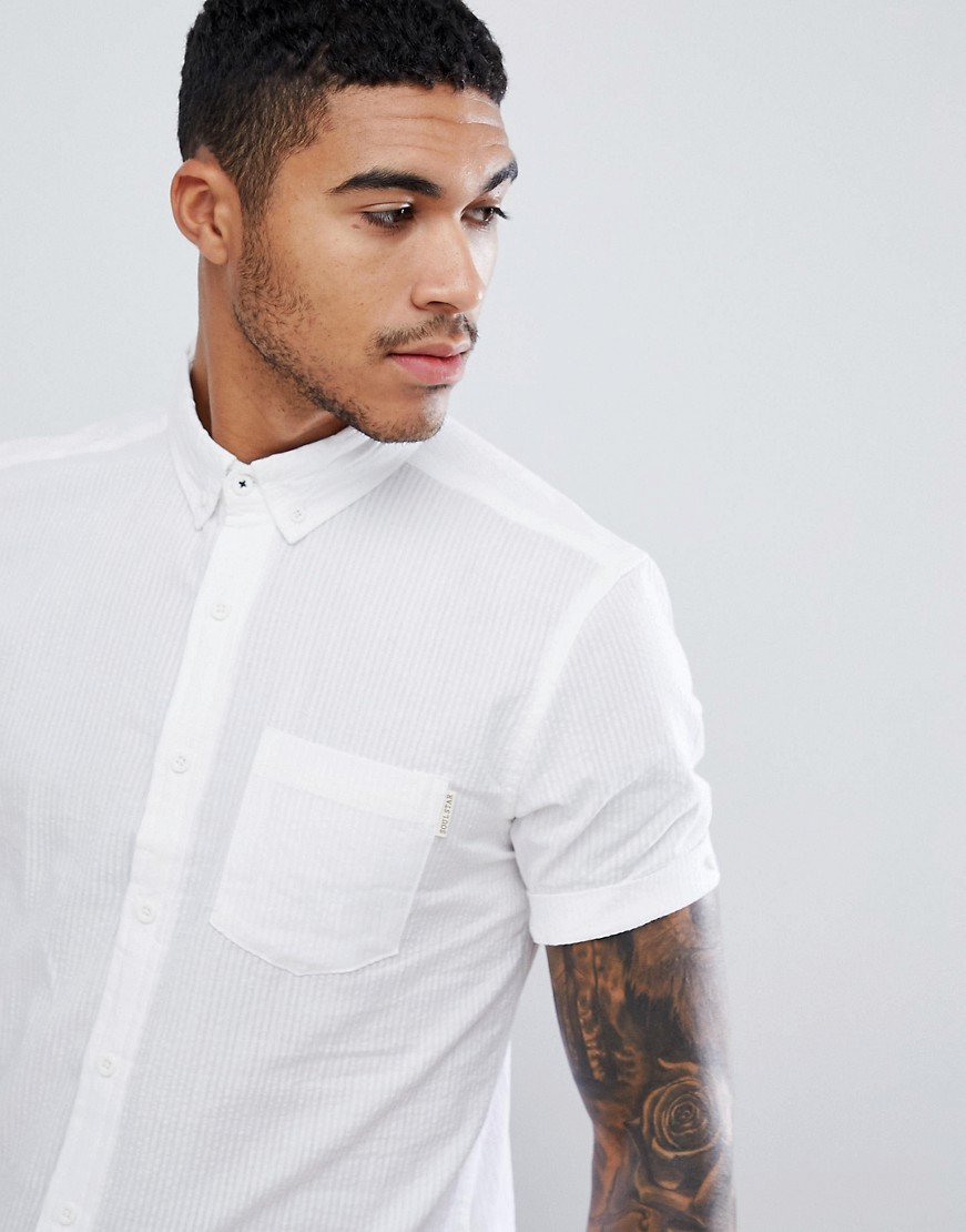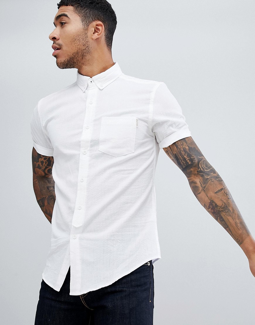 Soul Star biała koszula z krótkim rękawem Slim Fit M