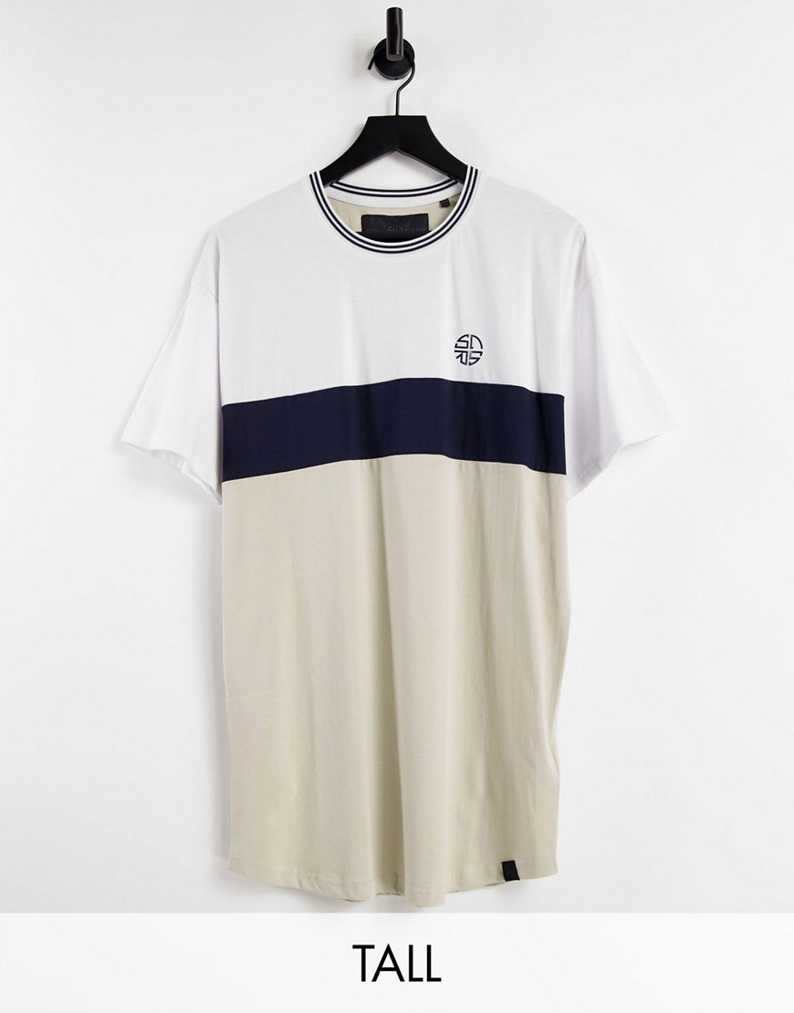Soul Star Tall beżowy T-shirt męski z blokami kolorów L