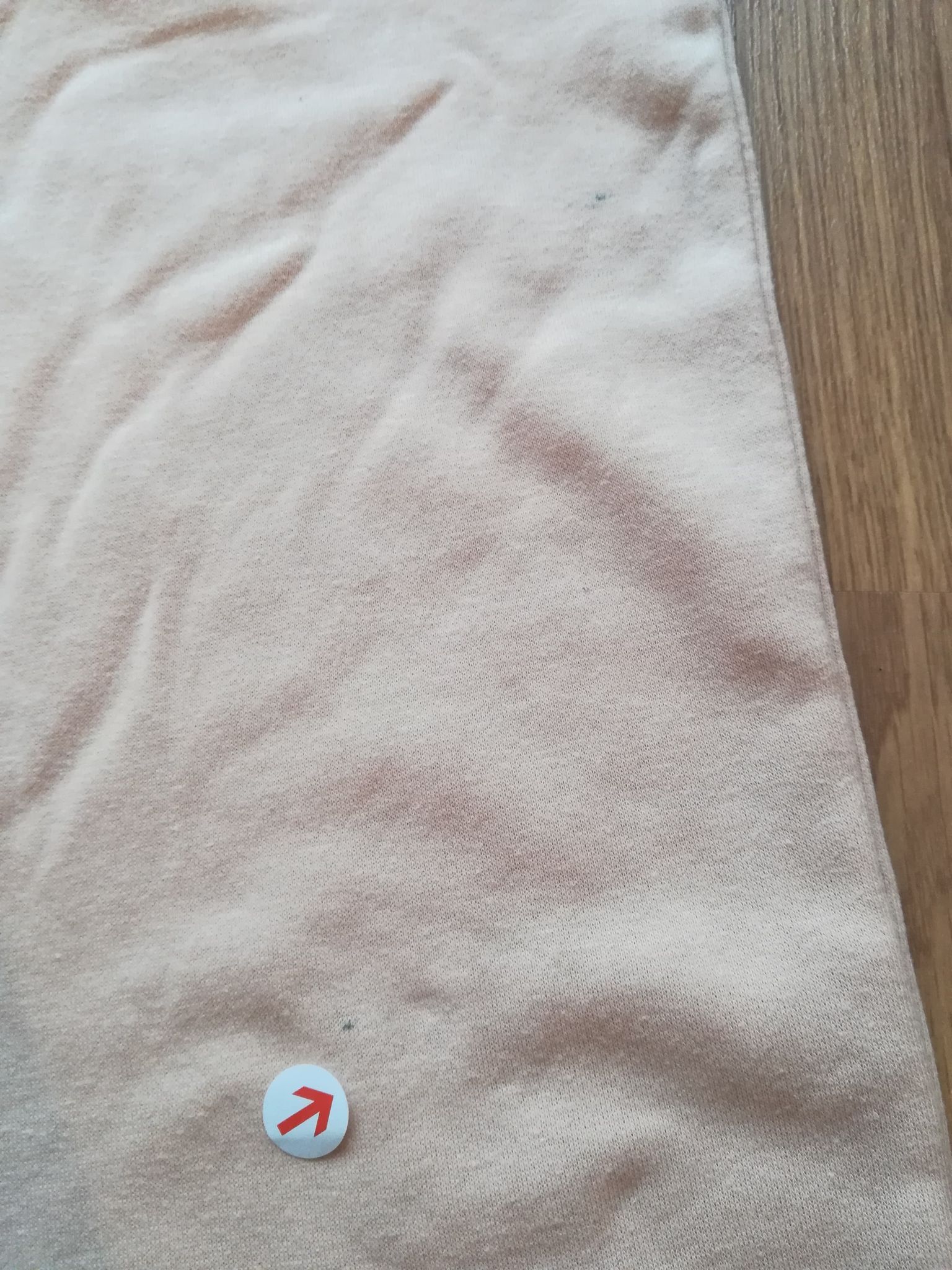 • Defekt – kropeczki z tyłu na prawej nogawce, delikatnie skulkowane (zdjęcie)