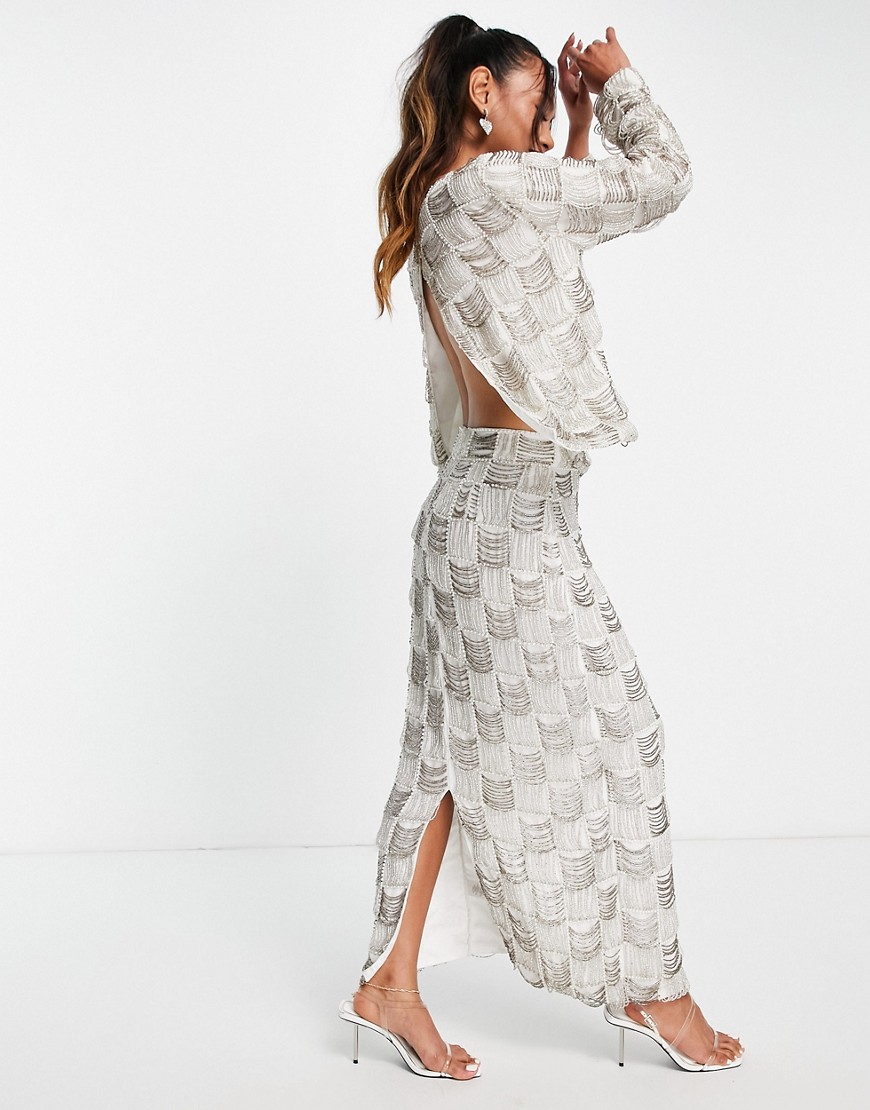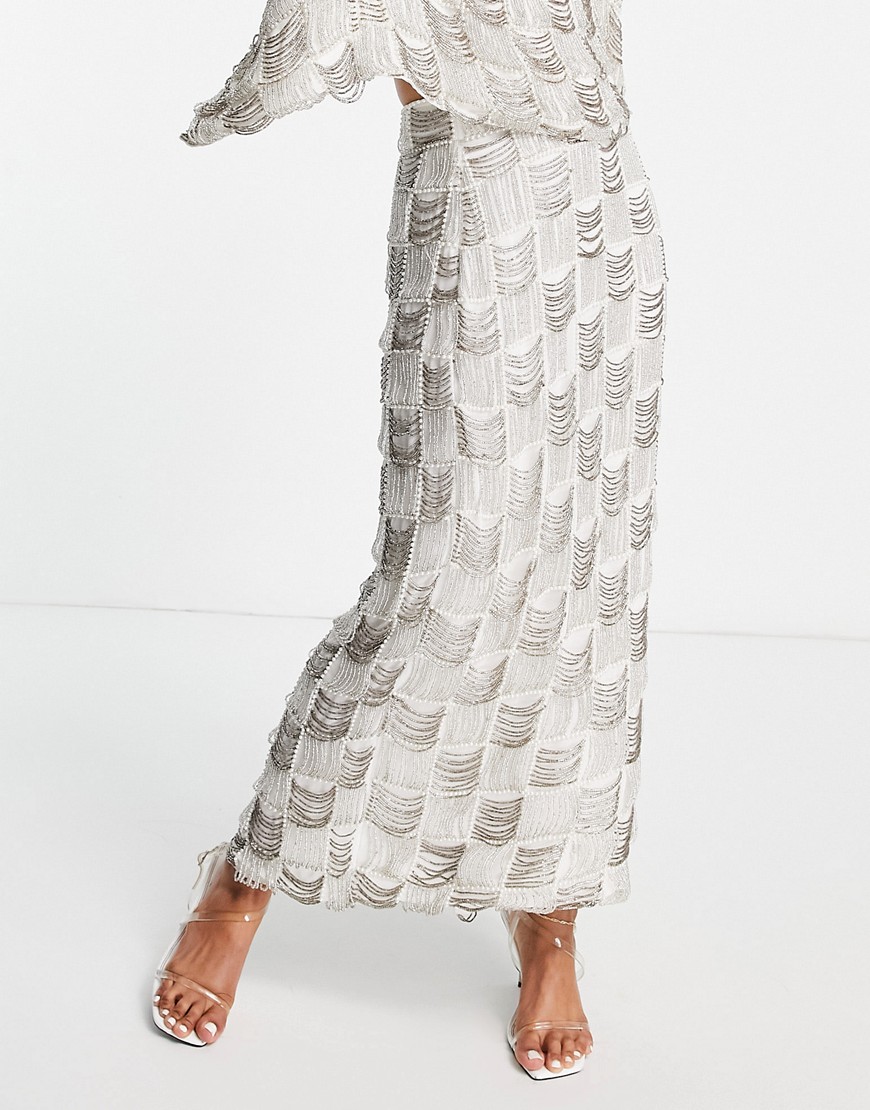 Spódnica midi ze wzorem w kratę z koralików i pereł ivory 38