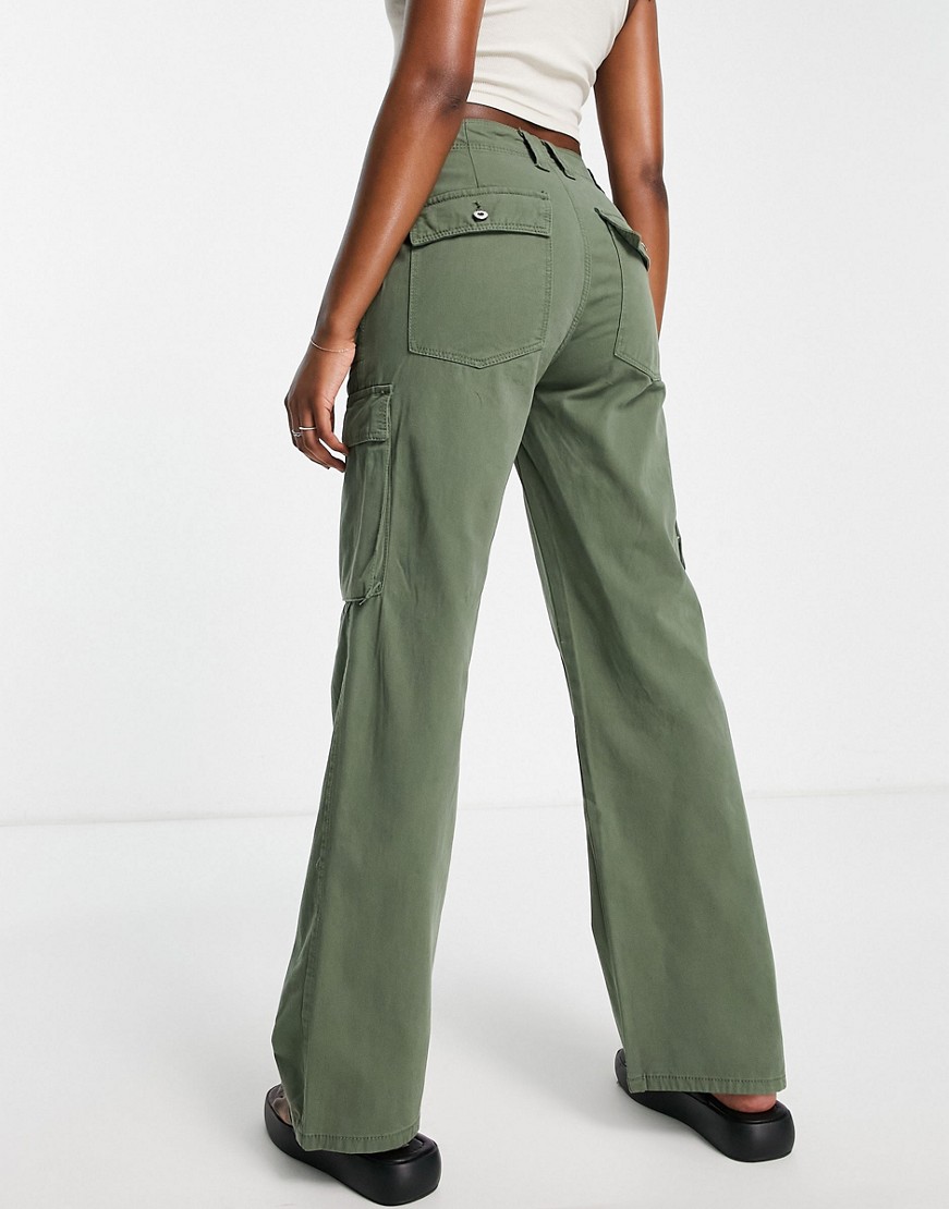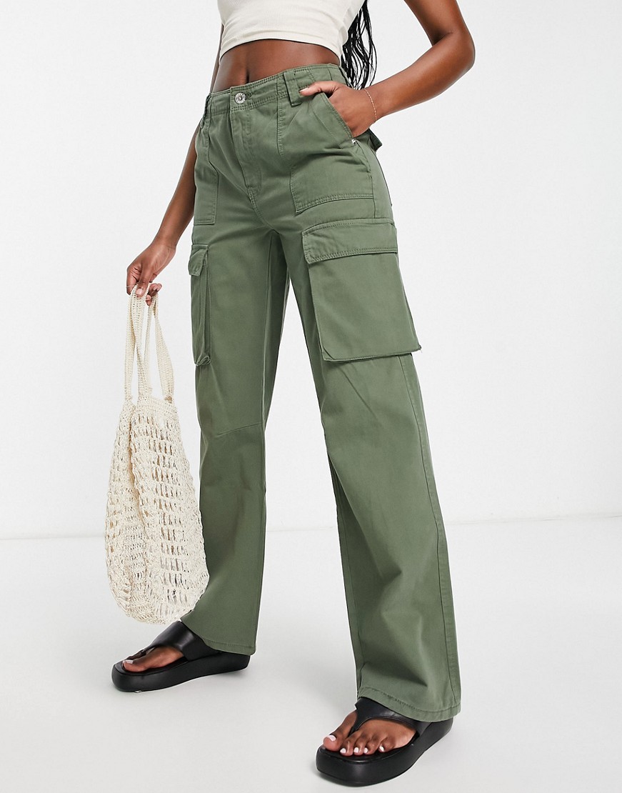 Spodnie damskie bojówki prostye nogawki khaki 38