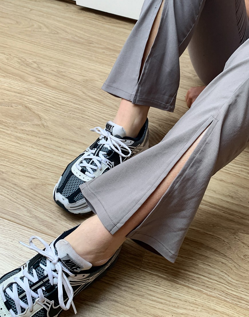 Spodnie z bengaliny z rozszerzanymi nogawkami z rozcięciem szare 34