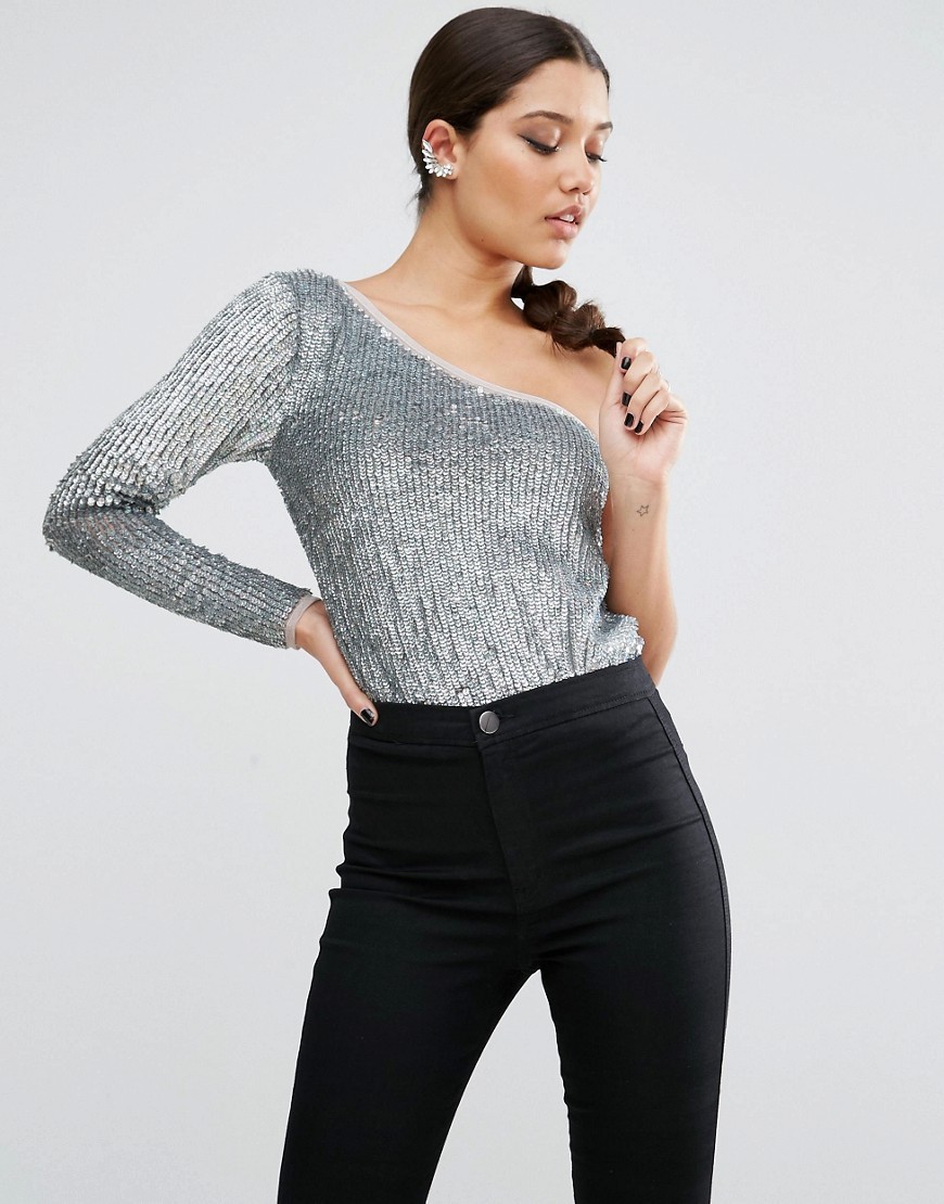 - Defekt: brak kilku cekinów na ramieniu (zdjęcie)