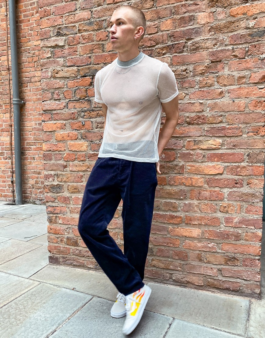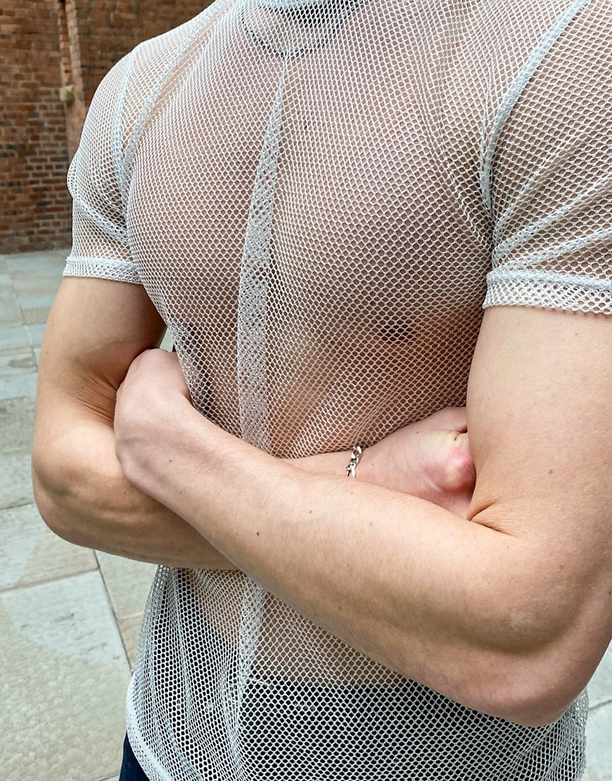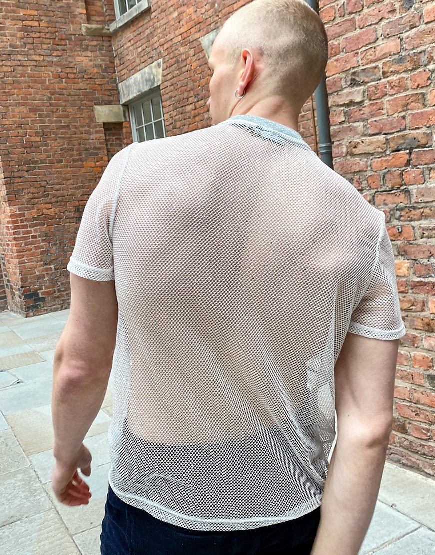 Srebrny męski T-shirt z błyszczącej siateczki M
