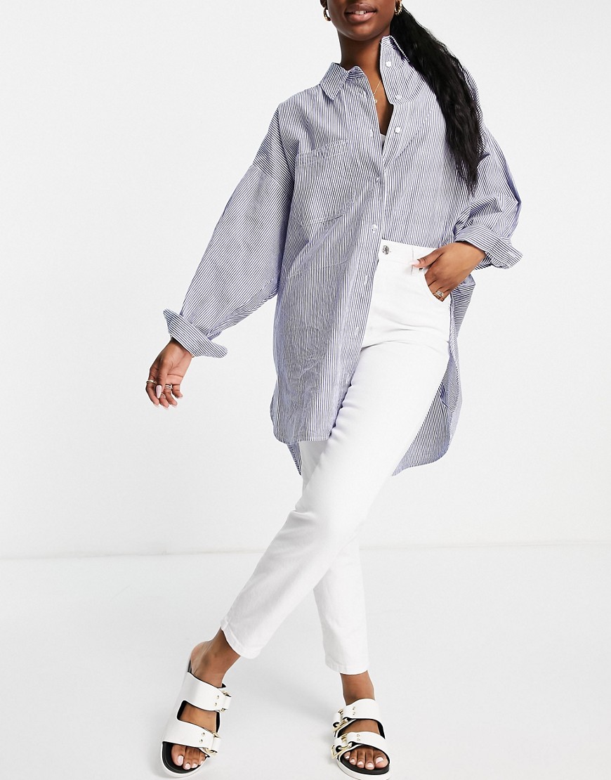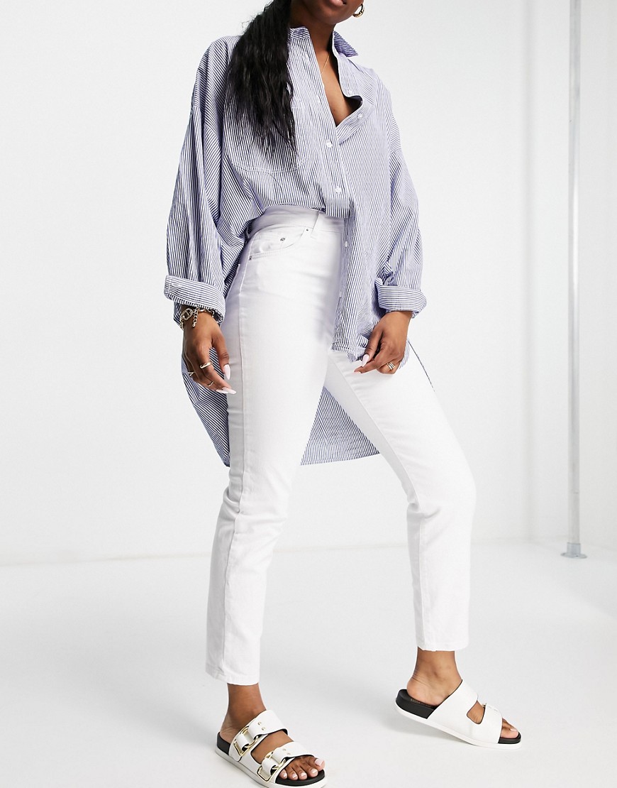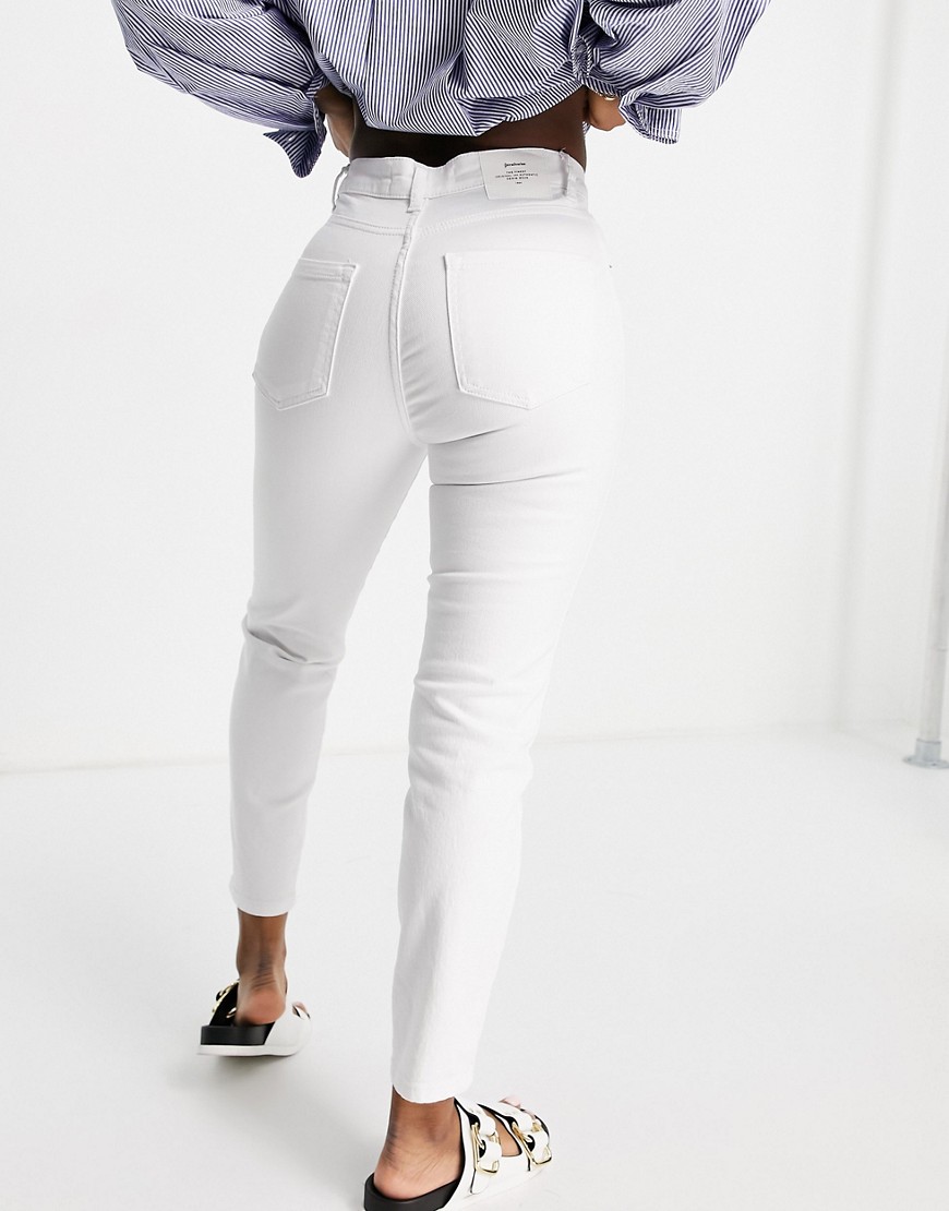 Stradivarius białe dopasowane mom jeans ze stretchem 38