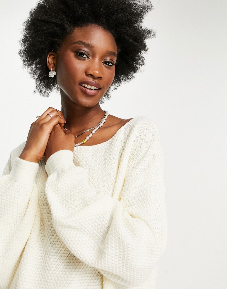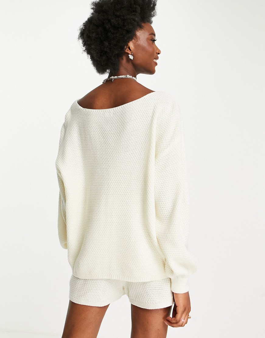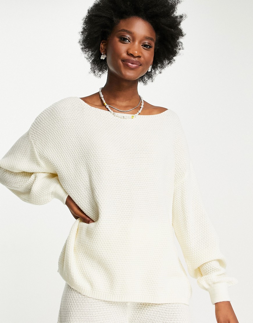 Style Cheat kremowy sweter z dzianiny o waflowym splocie L