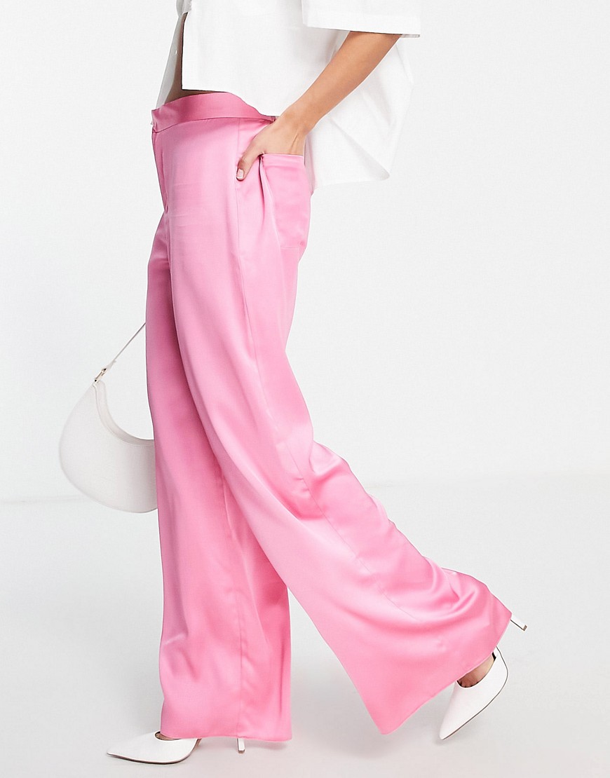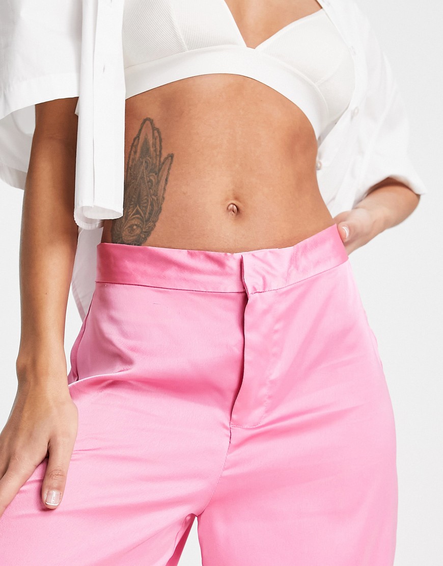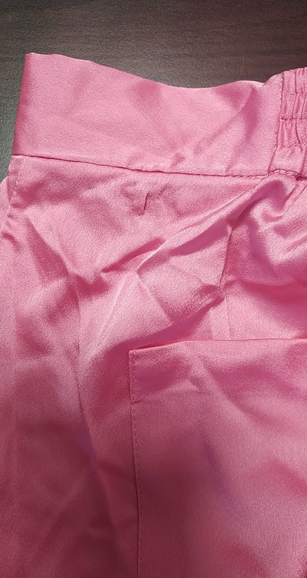 Style Cheat różowe satynowe spodnie z szerokimi nogawkami defekt 42