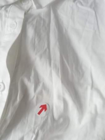 - defekt: skaza na materiale z przodu na około 1 cm na wysokości lewej piersi (ostatnie zdjęcie w galerii to realne zdjęcie wady produktu)