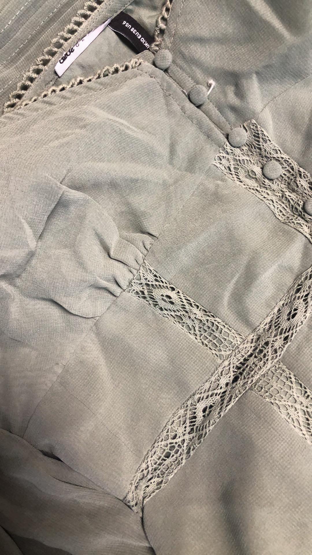 - Defekt: zaciągnięcie materiału przód bok wyżej talii oraz urwane zapięcie na guzik