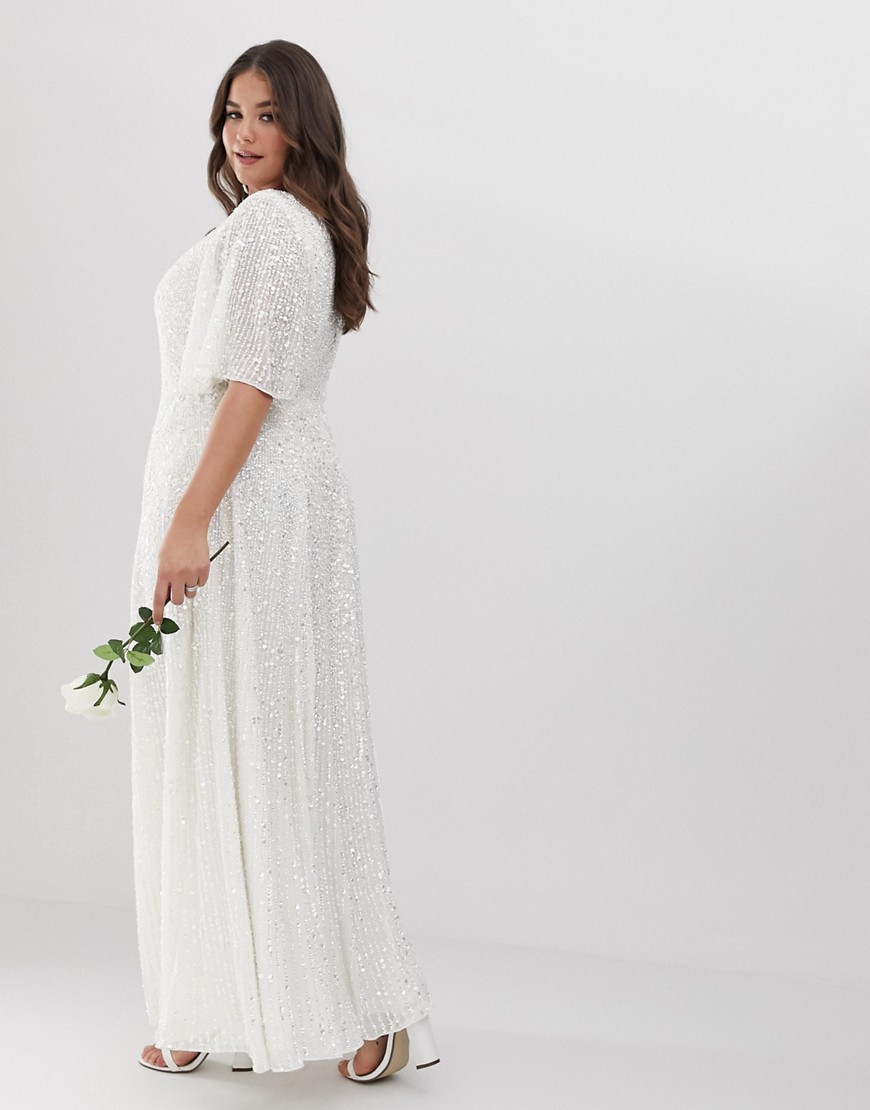 Sukienka ślubna maxi z cekinami i powiewnymi rękawami 50