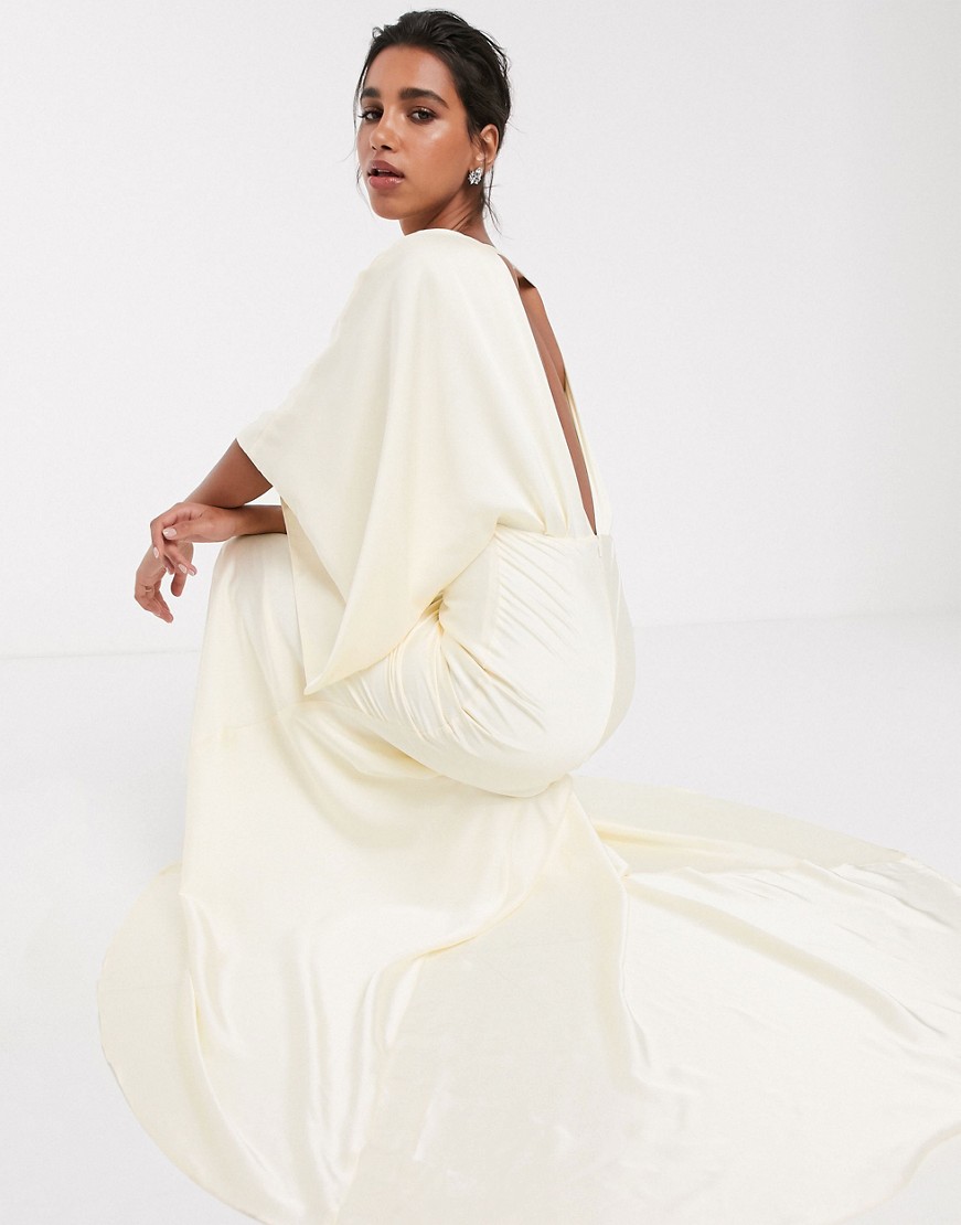 Sukienka ślubna maxi z głębokim dekoltem na plecach i rękawami kimono 40