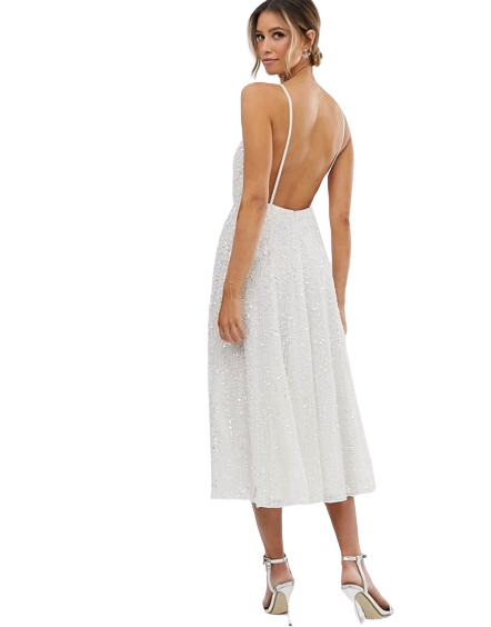 Sukienka ślubna midi na ramiączkach ze zdobieniem 44