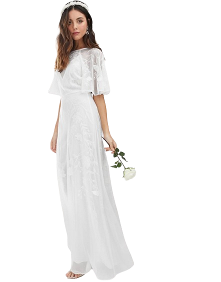 Sukienka ślubna z rozszerzanymi rękawami i haftowaną aplikacją 38