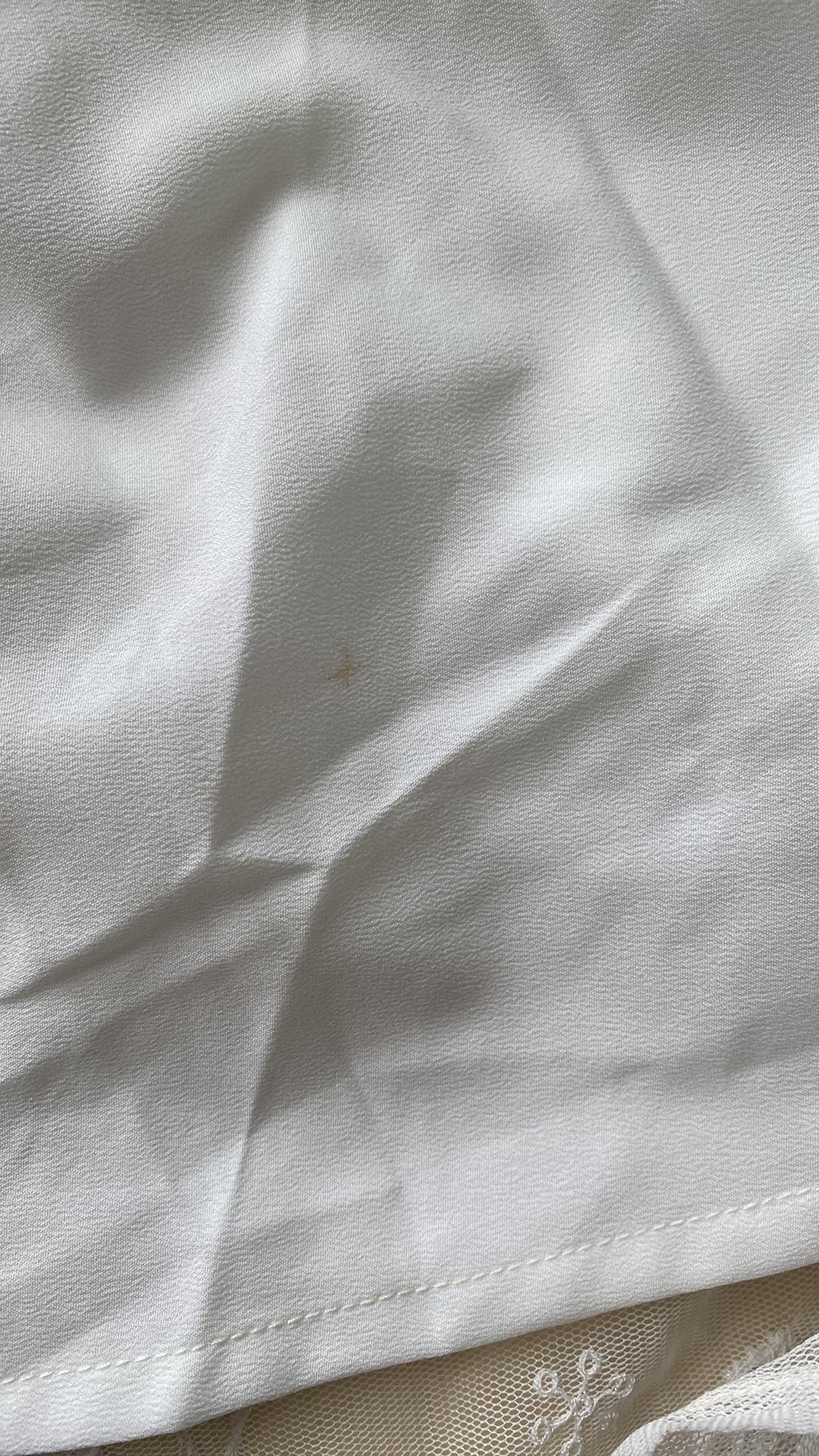 - Defekt: rozdarcie przy dekolcie, zabrudzenie halka przód dół oraz zabrudzenie talia tył