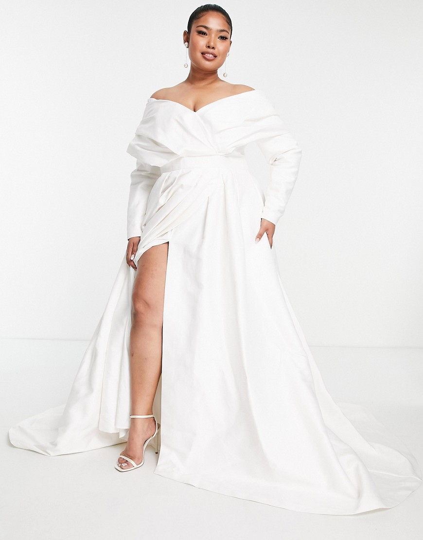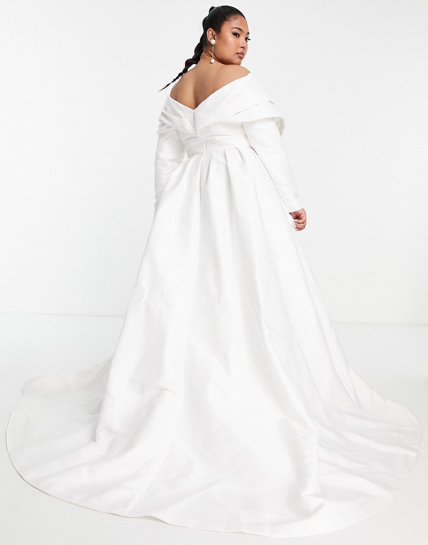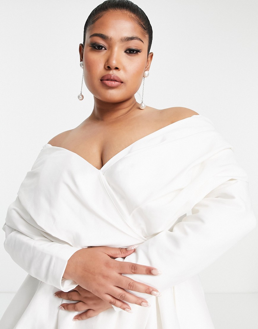 Suknia ślubna z odsłoniętymi ramionami biała plus size defekt 48