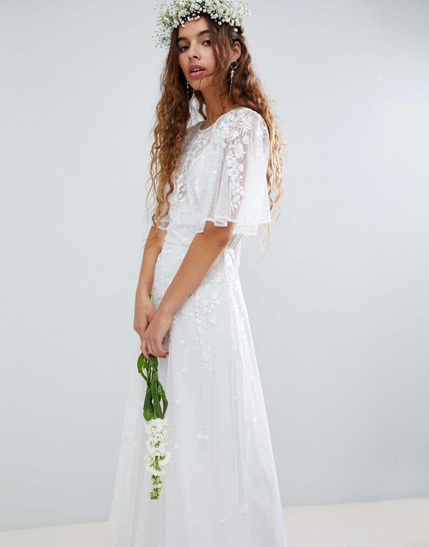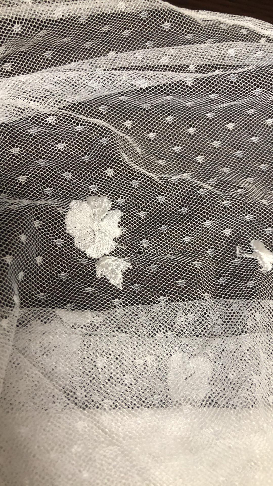 Suknia ślubna z szerokimi rękawami i haftowanym wzorem defekt L
