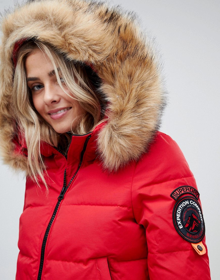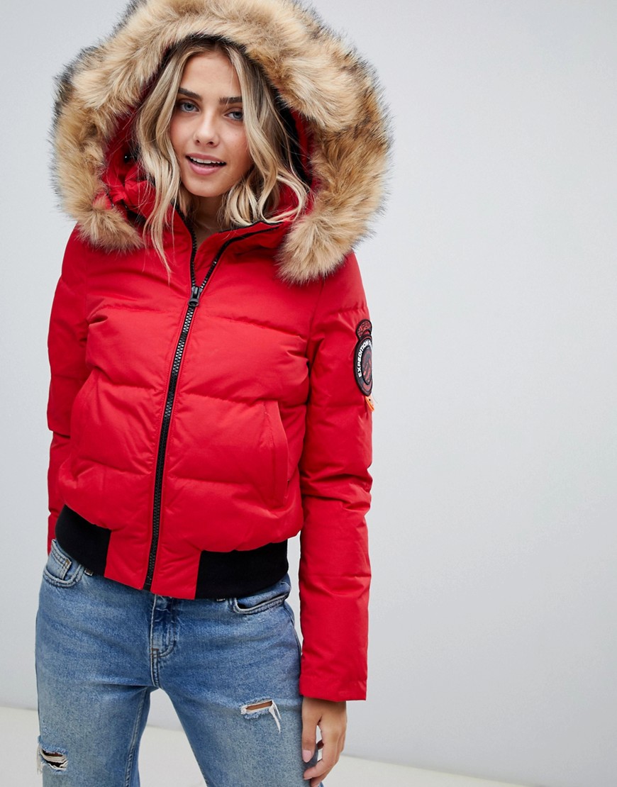 Superdry Everest zimowa kurtka bomber z futrzanym kapturem 38