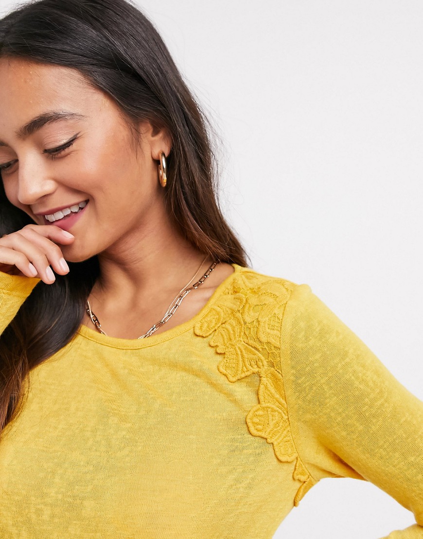 Superdry żółta bluzka z koronką 34